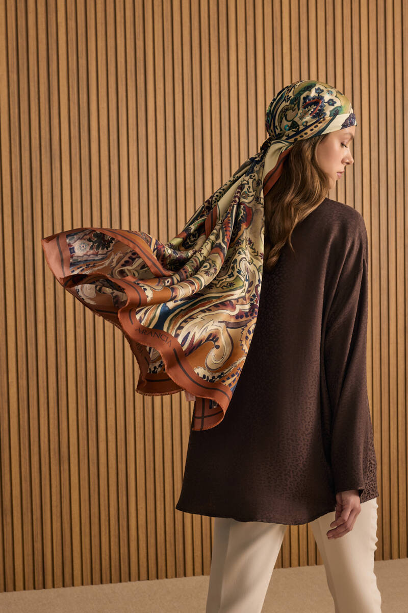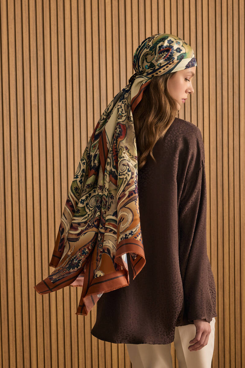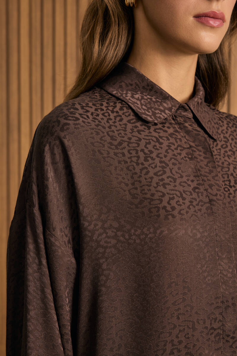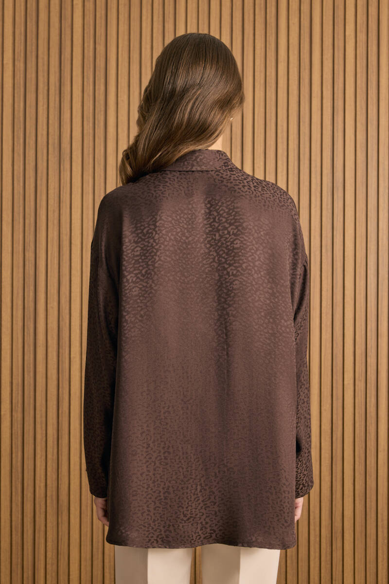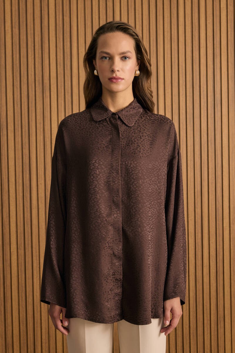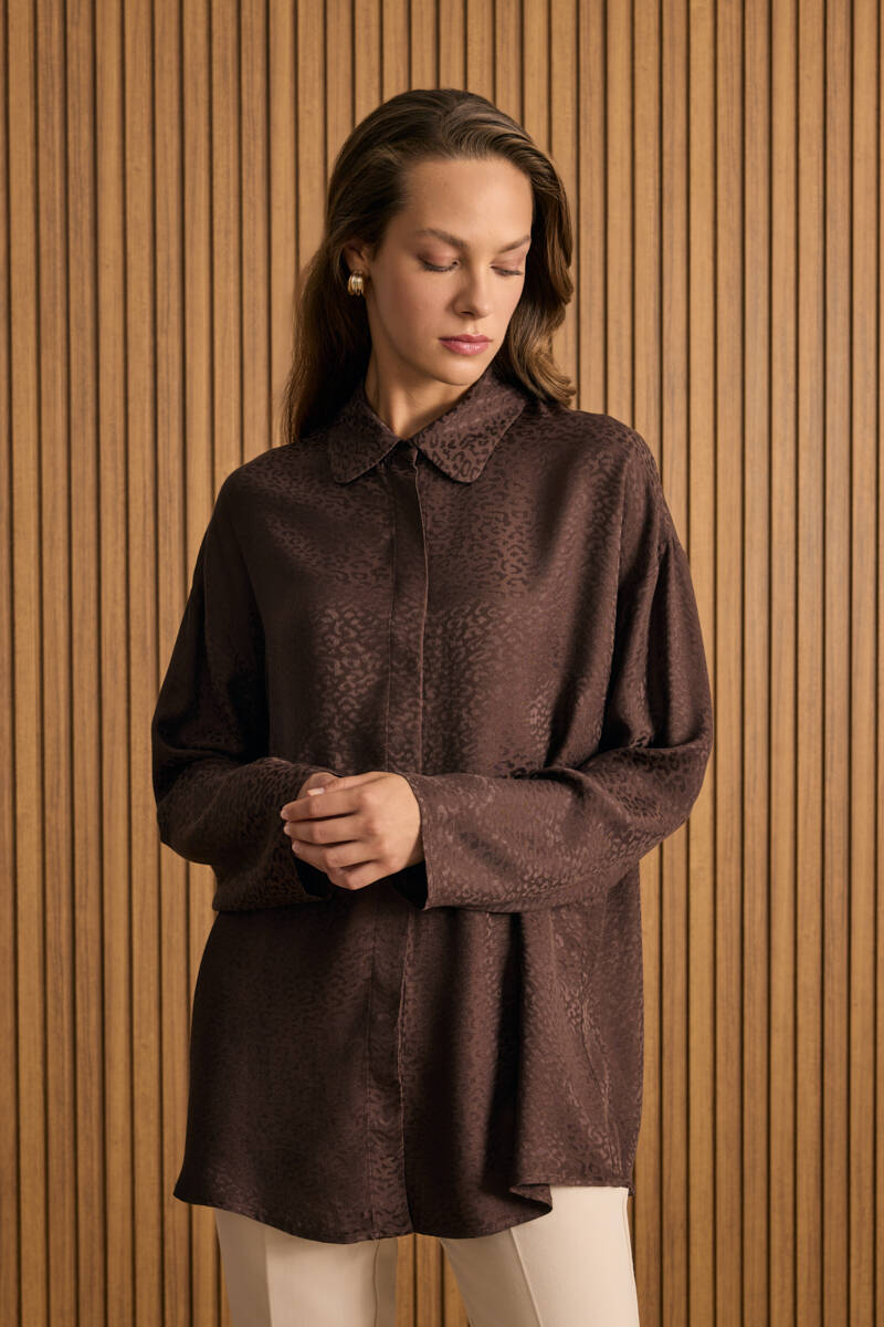 Kahverengi Dokusu Desenli Rayon Gömlek