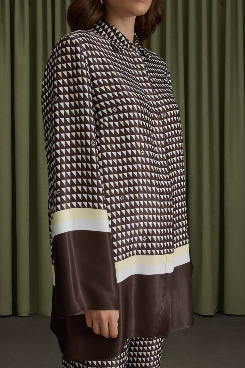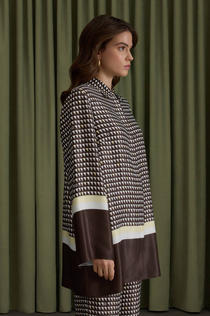 Kahverengi Koza Desenli Beli Lastikli Viscon Pantolon