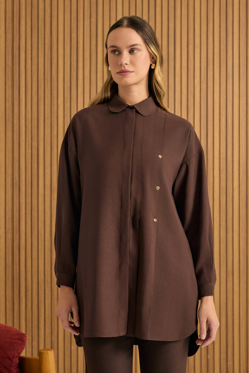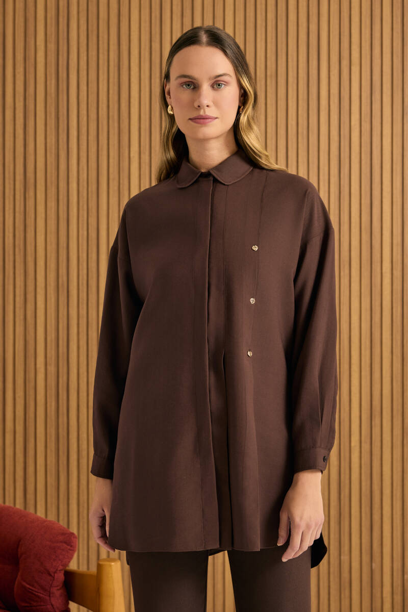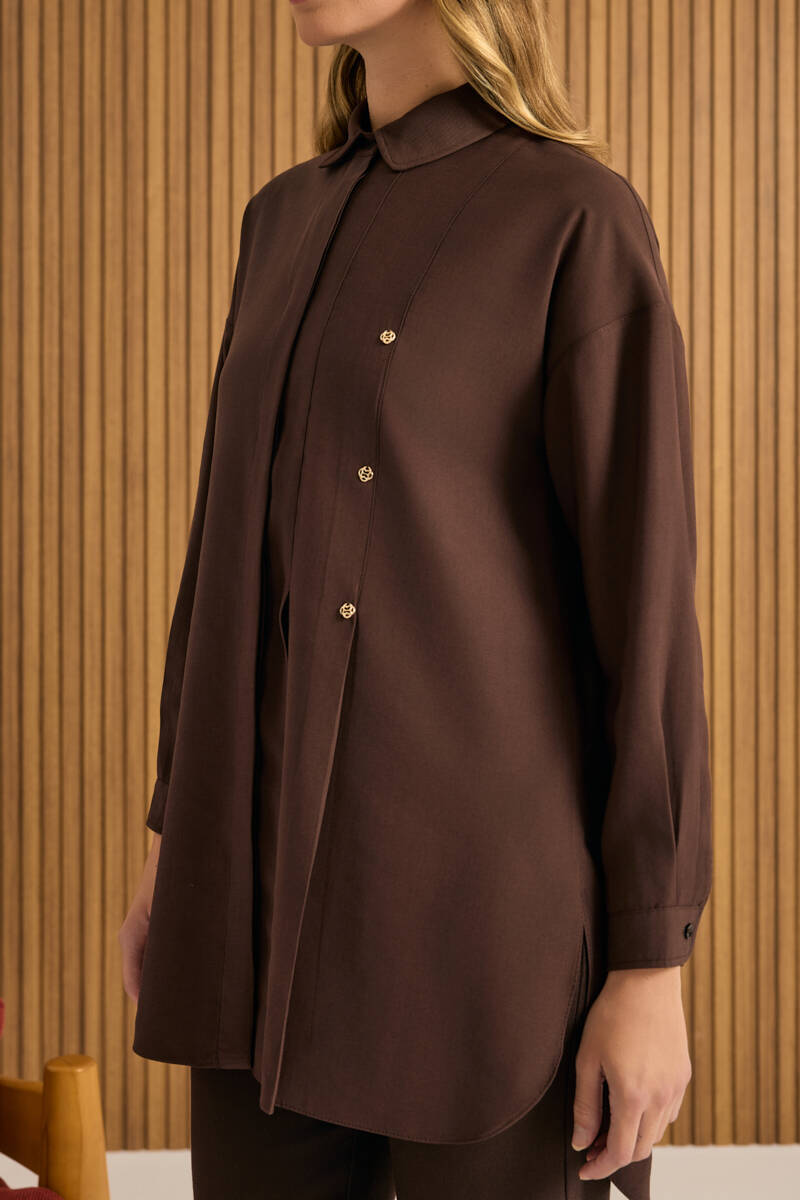 Saks Önden Apolet Detaylı Dokuma Tunik