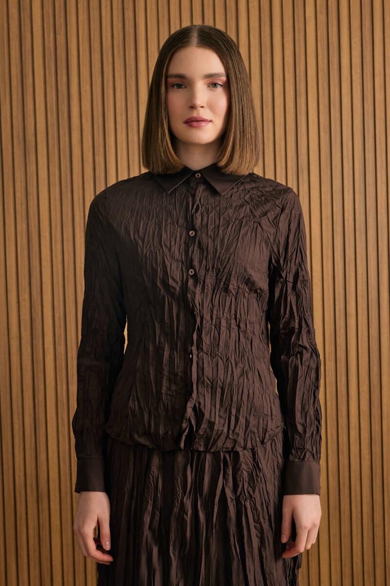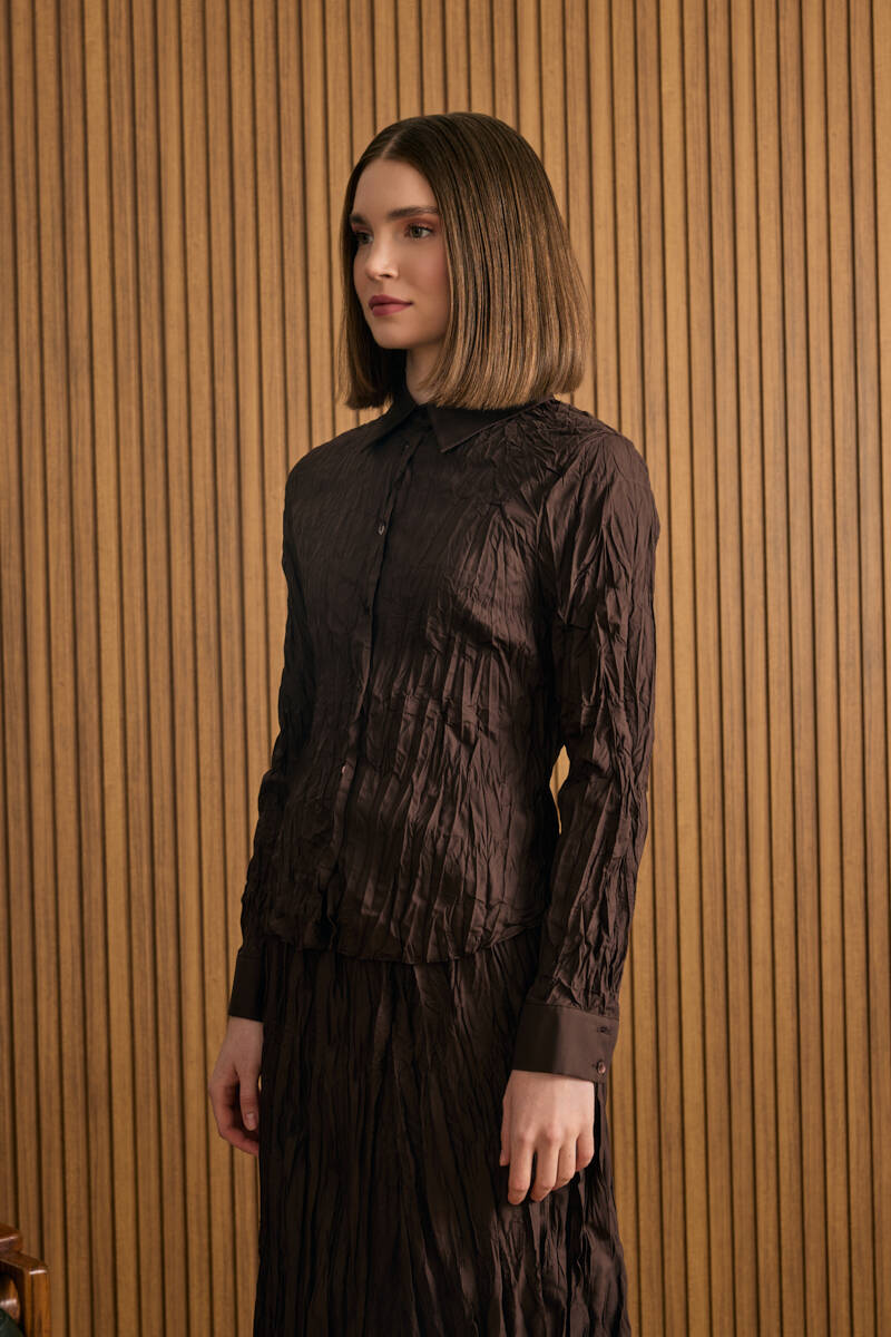 Ekru Gold Sim Çizgili Viscon Gömlek
