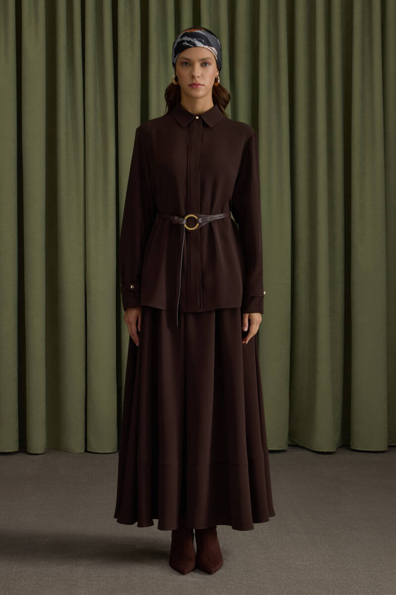 Kahverengi Krep Bluz