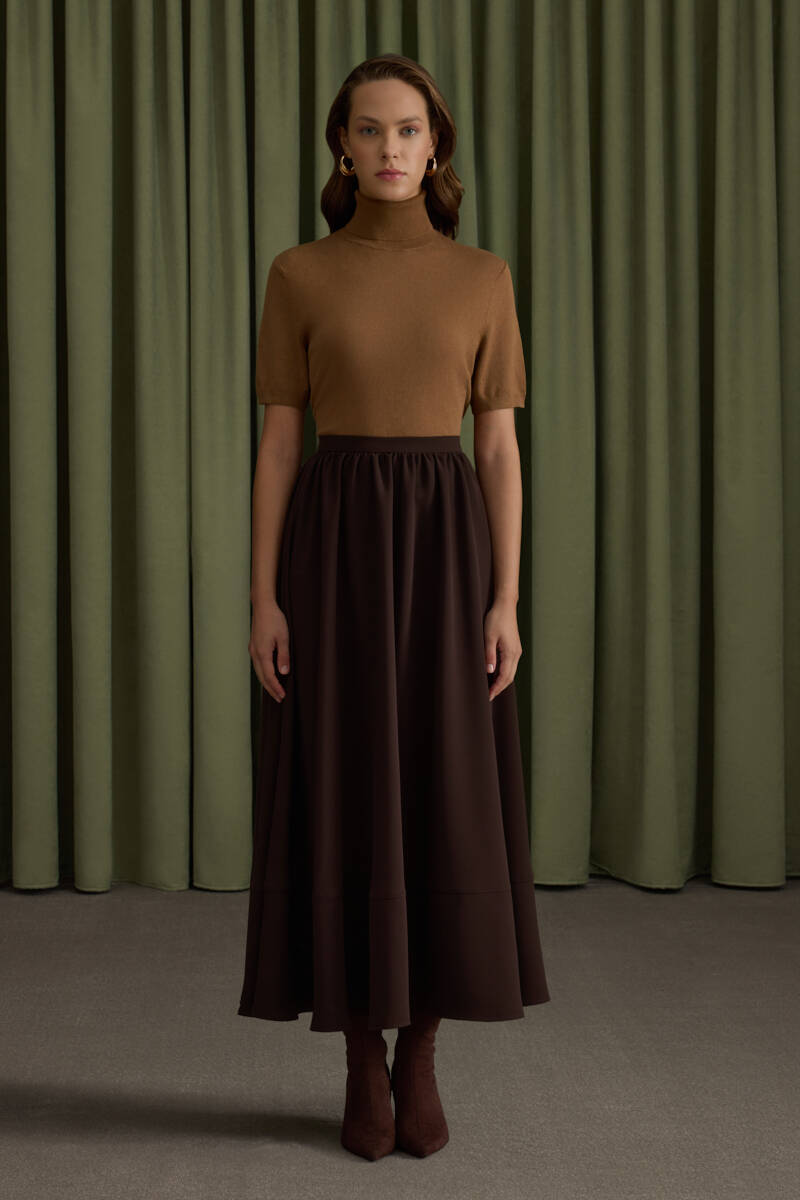 Camel Tencel Evaze Etek