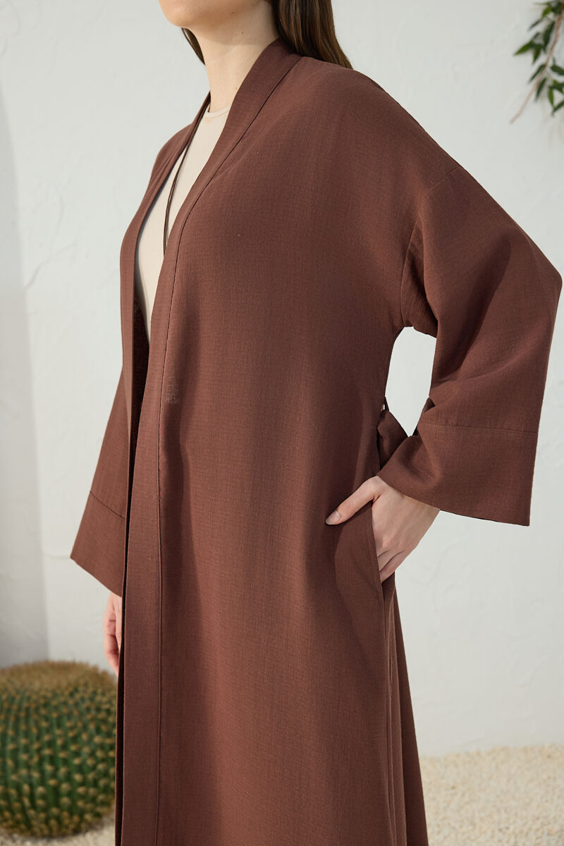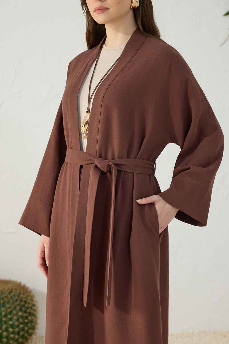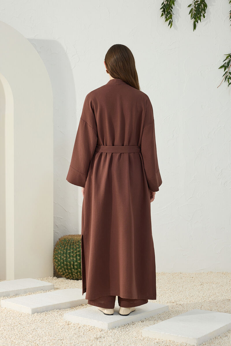 Kahverengi Viscon Cotton , Yandan Bağlamalı Sabahlık