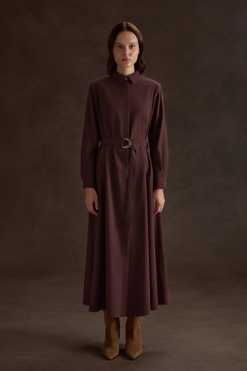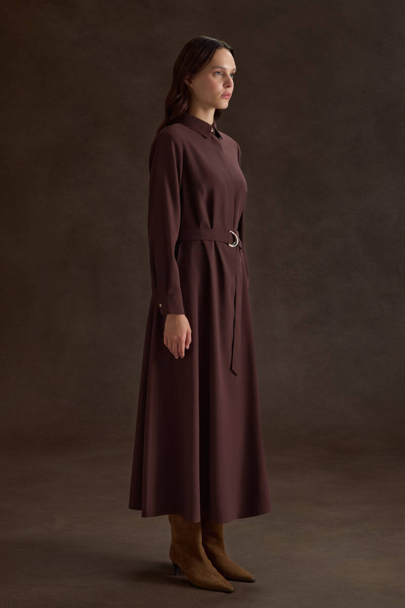 Ekru Kumaşı Püskül Yüzeyli Cotton Gömlek Elbise