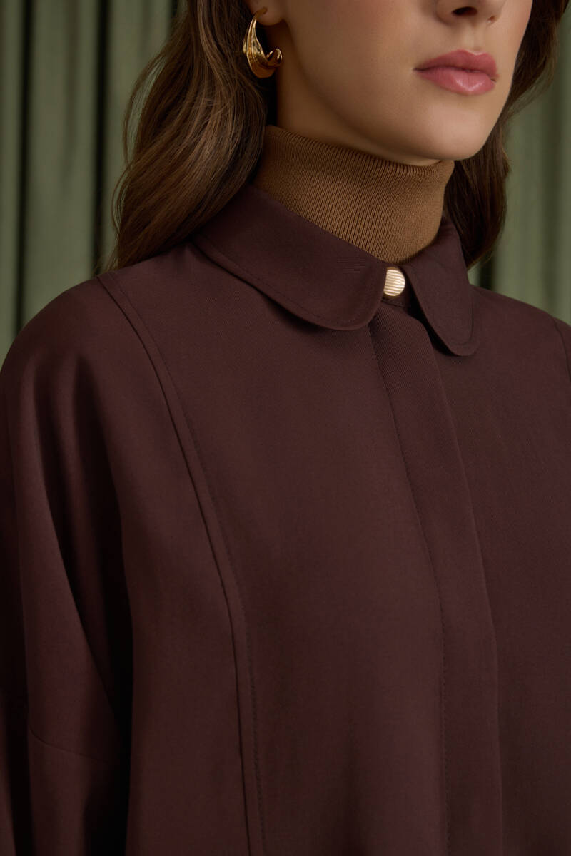 Saks Önden Apolet Detaylı Dokuma Tunik