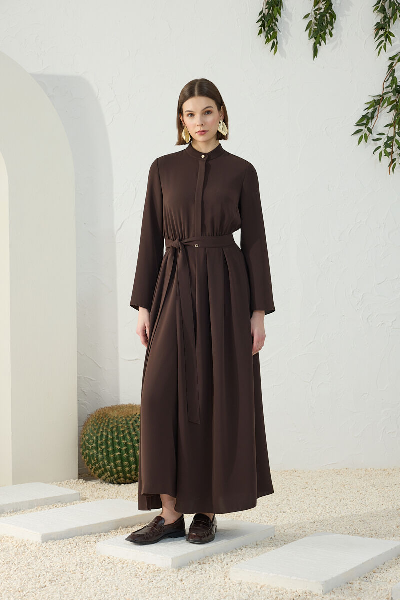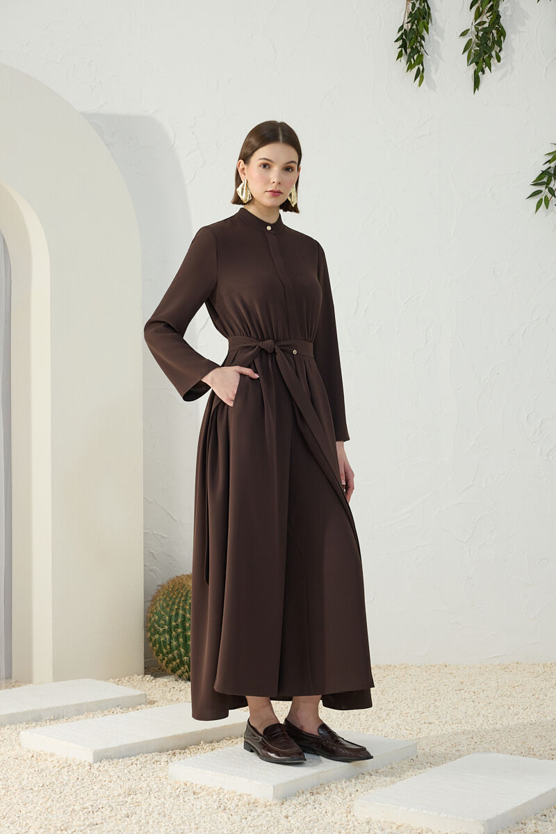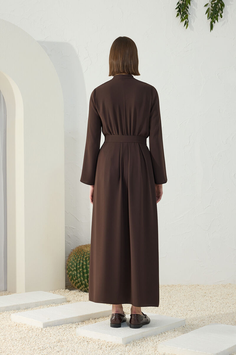 Bej Kemerli Pelerin Detaylı Dokuma Tulum