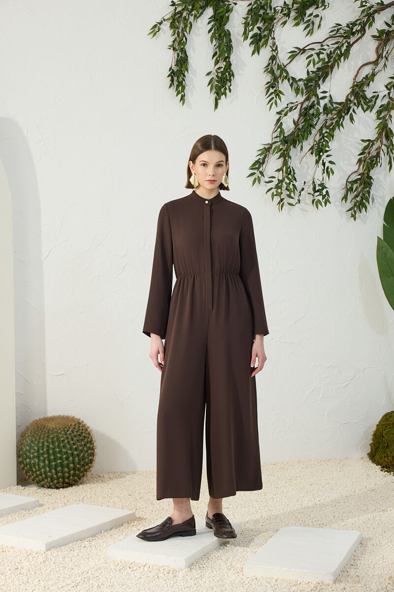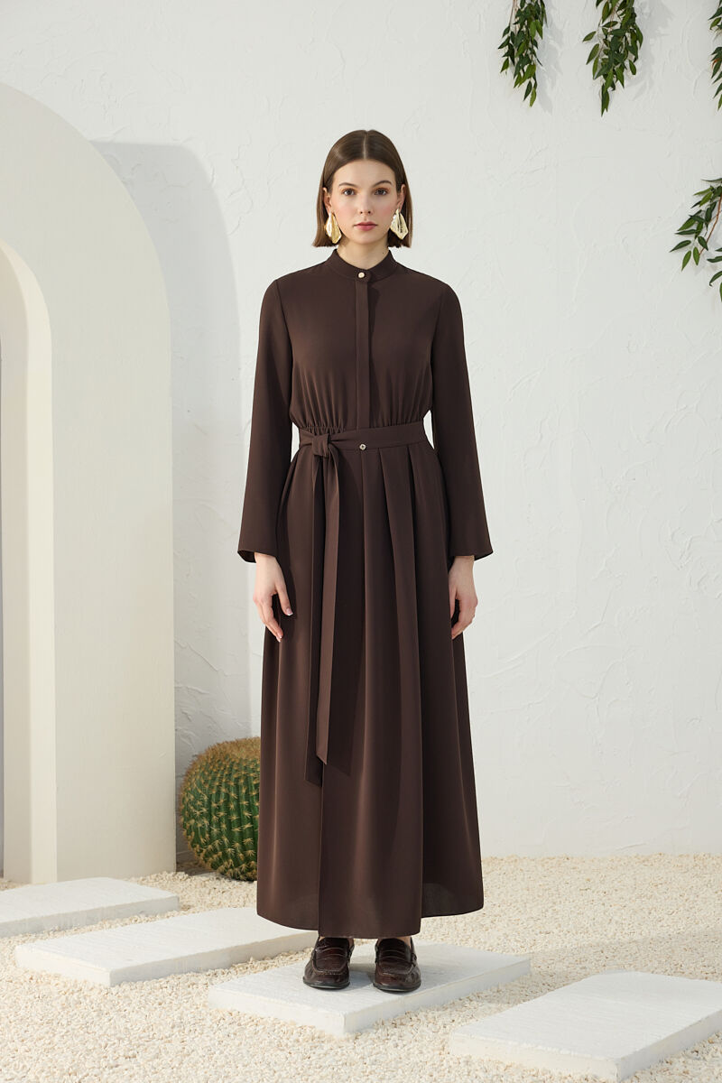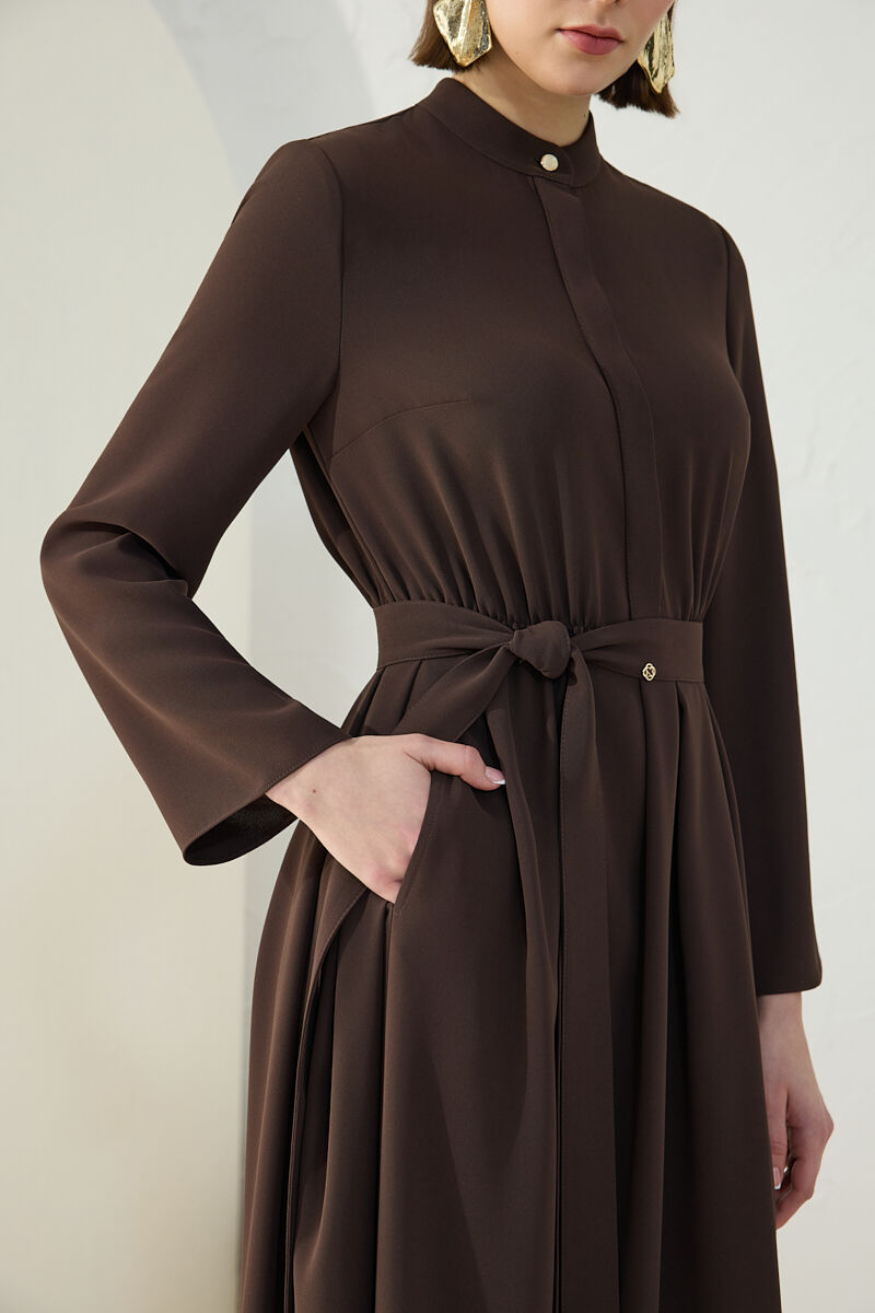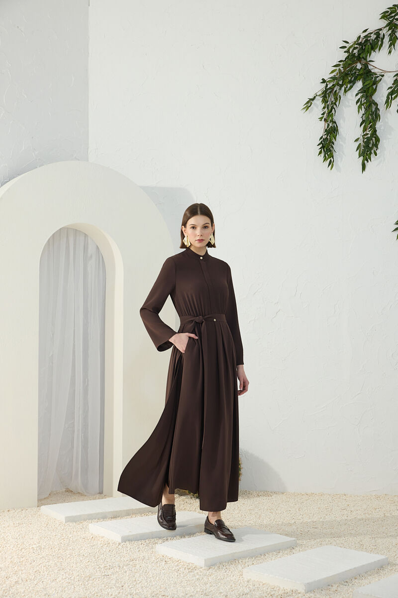 Bej Kemerli Pelerin Detaylı Dokuma Tulum