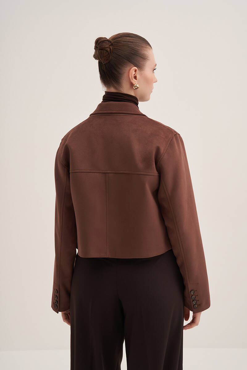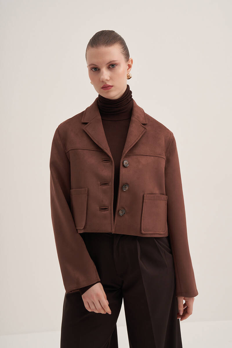Ekru Sıfır Yaka Metal Düğmeli Şık Ceket
