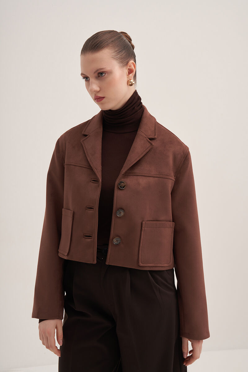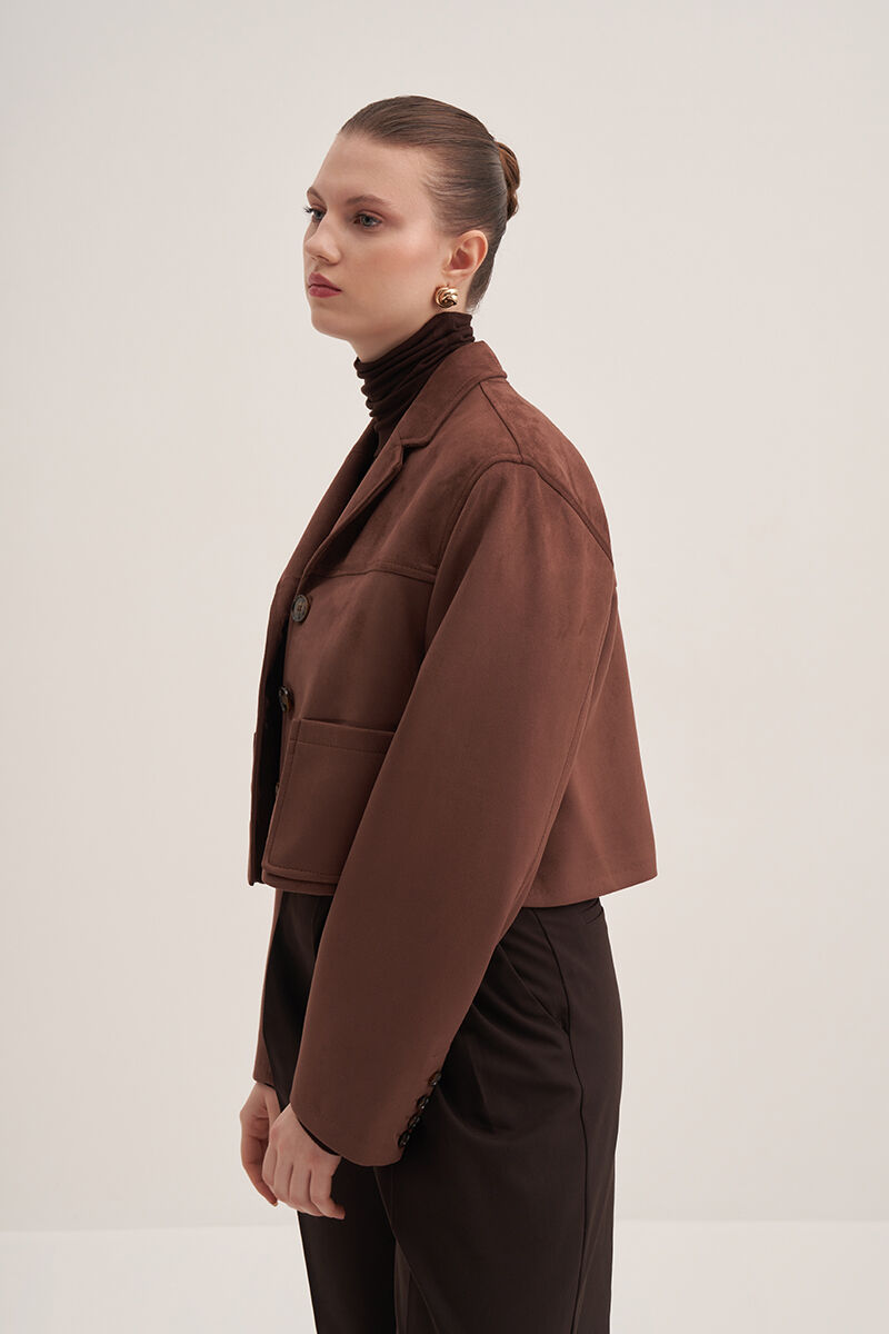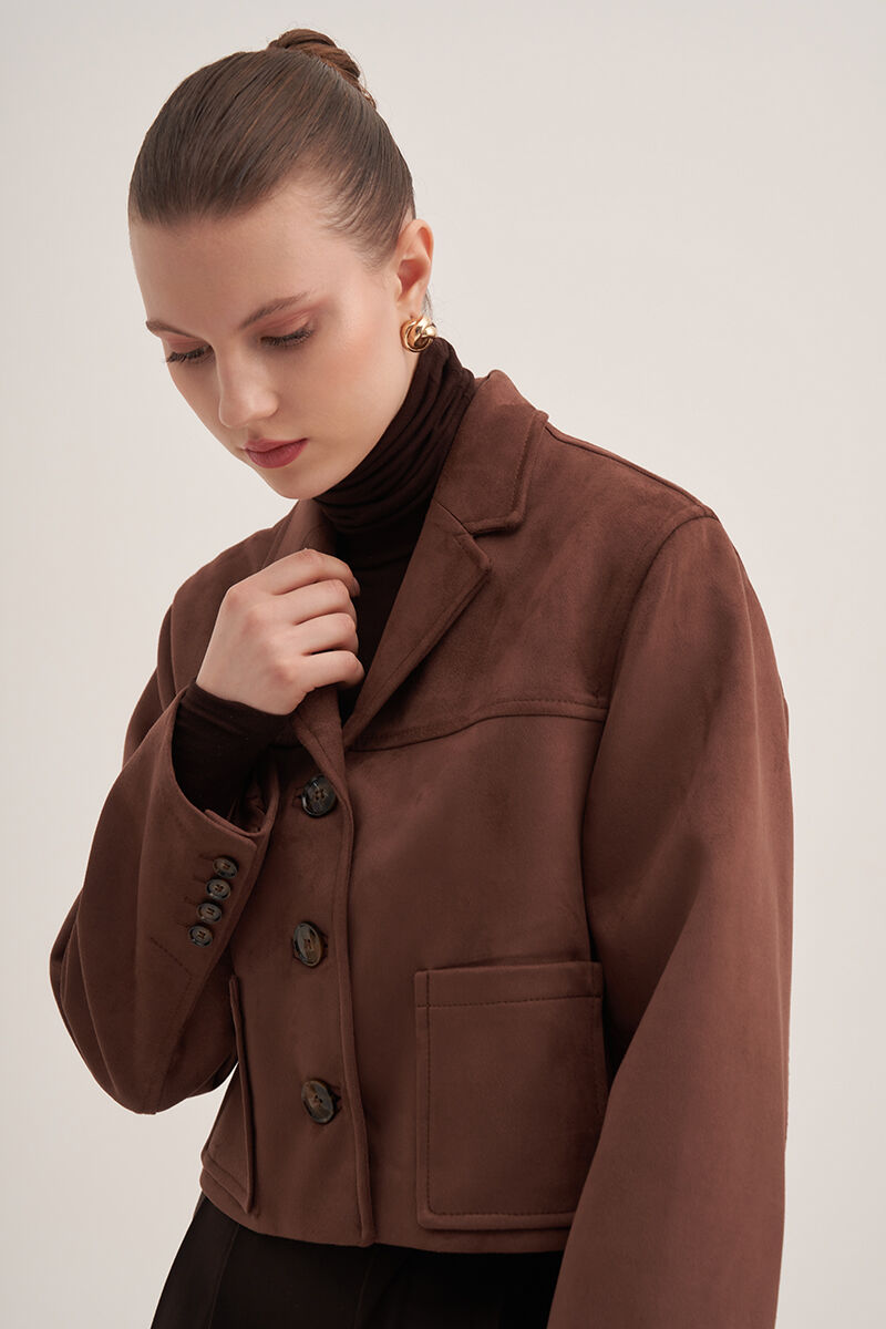Ekru Sıfır Yaka Metal Düğmeli Şık Ceket
