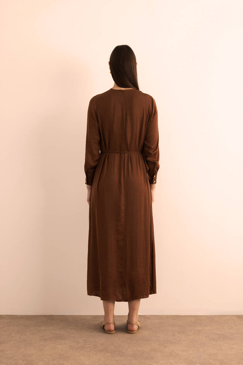 Somon Desenli Beli Bağlama Detaylı Elbise