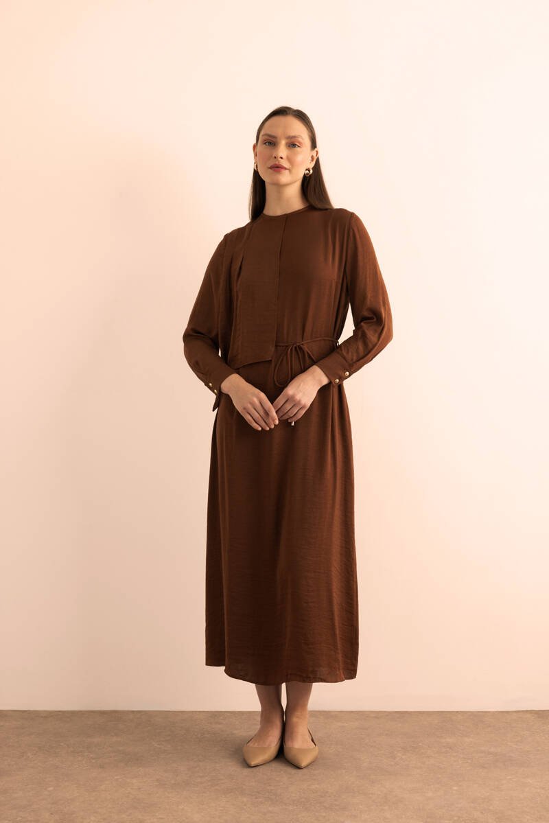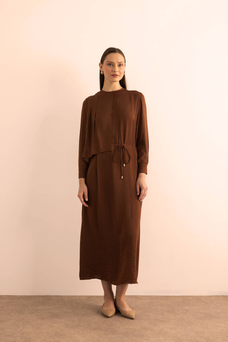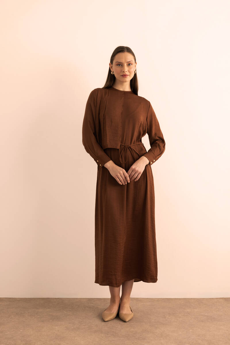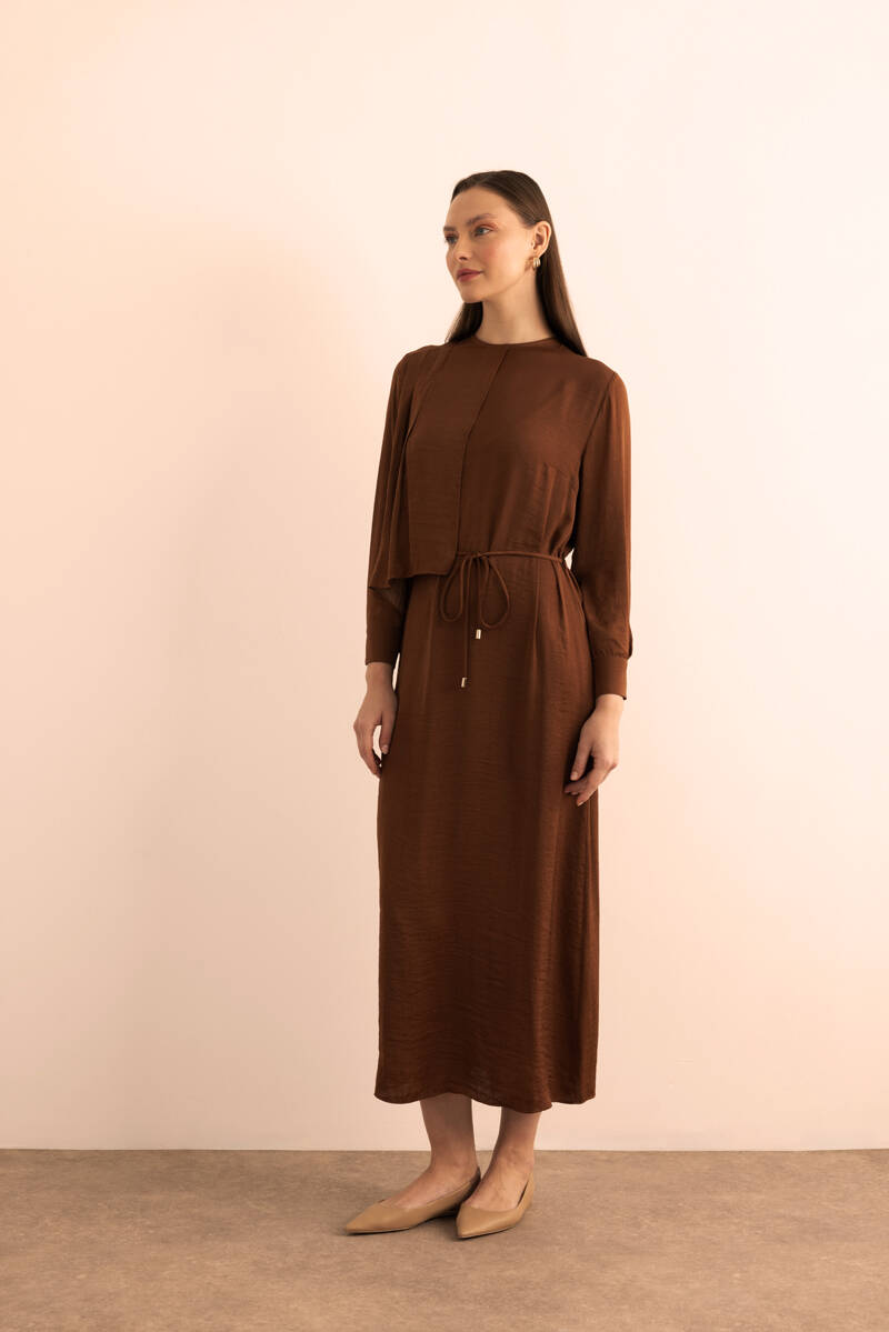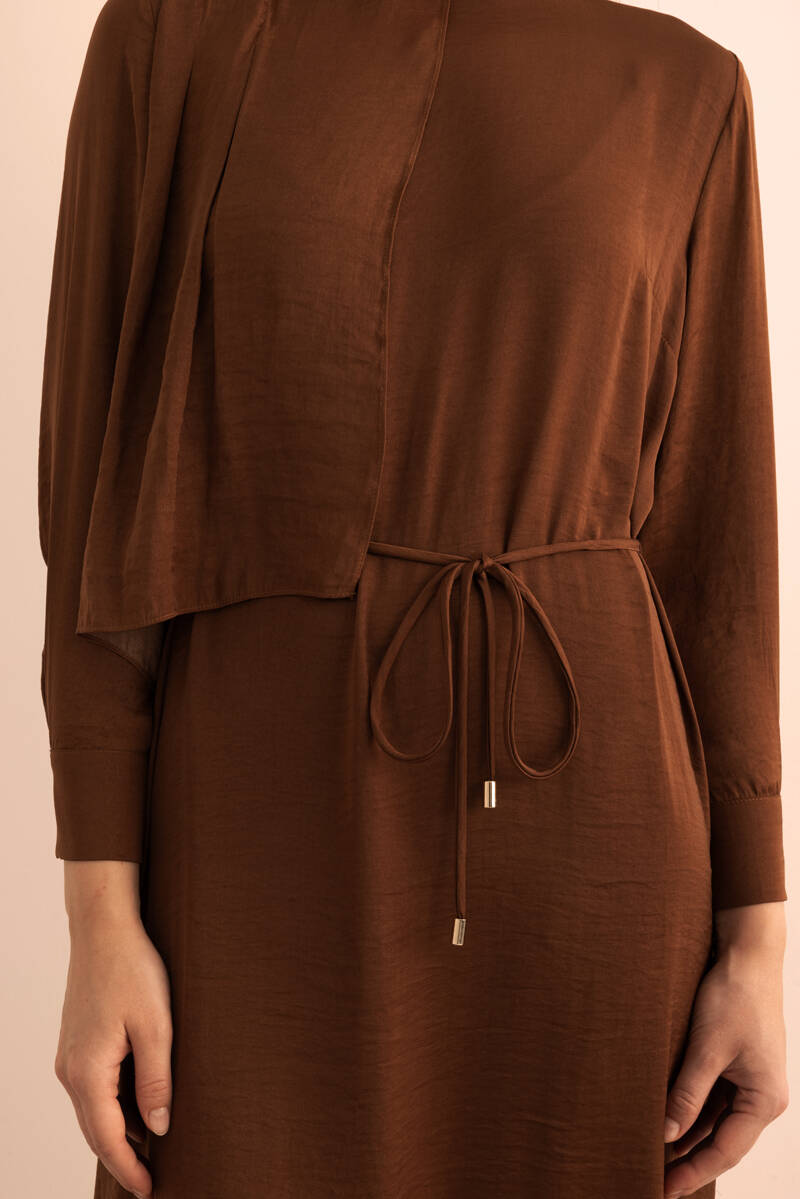 Ekru Kumaşı Püskül Yüzeyli Cotton Gömlek Elbise