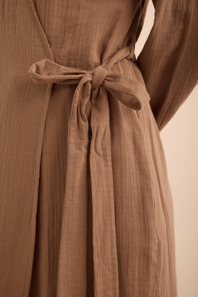 Haki Viscon Cotton , Yandan Bağlamalı Sabahlık