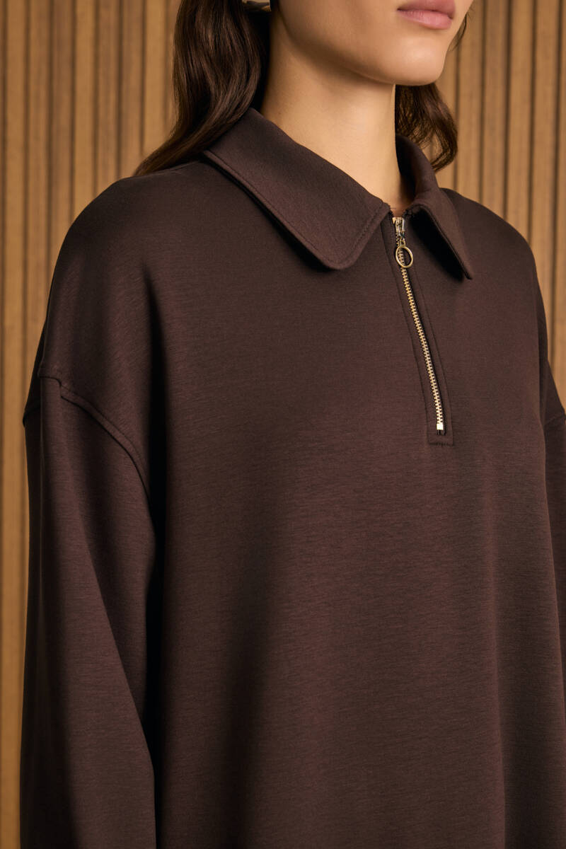Kahverengi Yakası Fermuarlı Sweatshirt