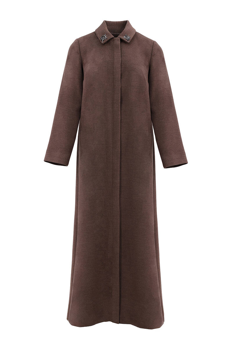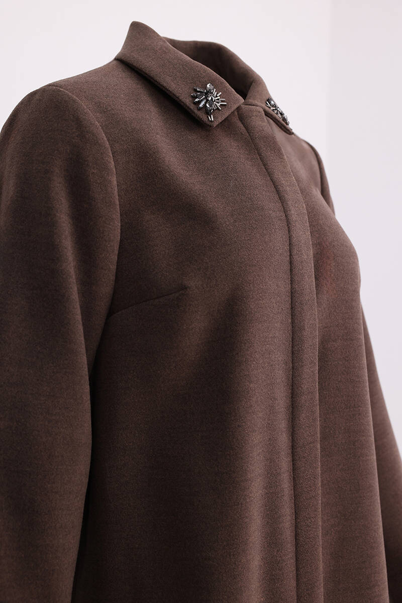 Ekru Kruvaze Kapamalı Pens Detaylı Manto