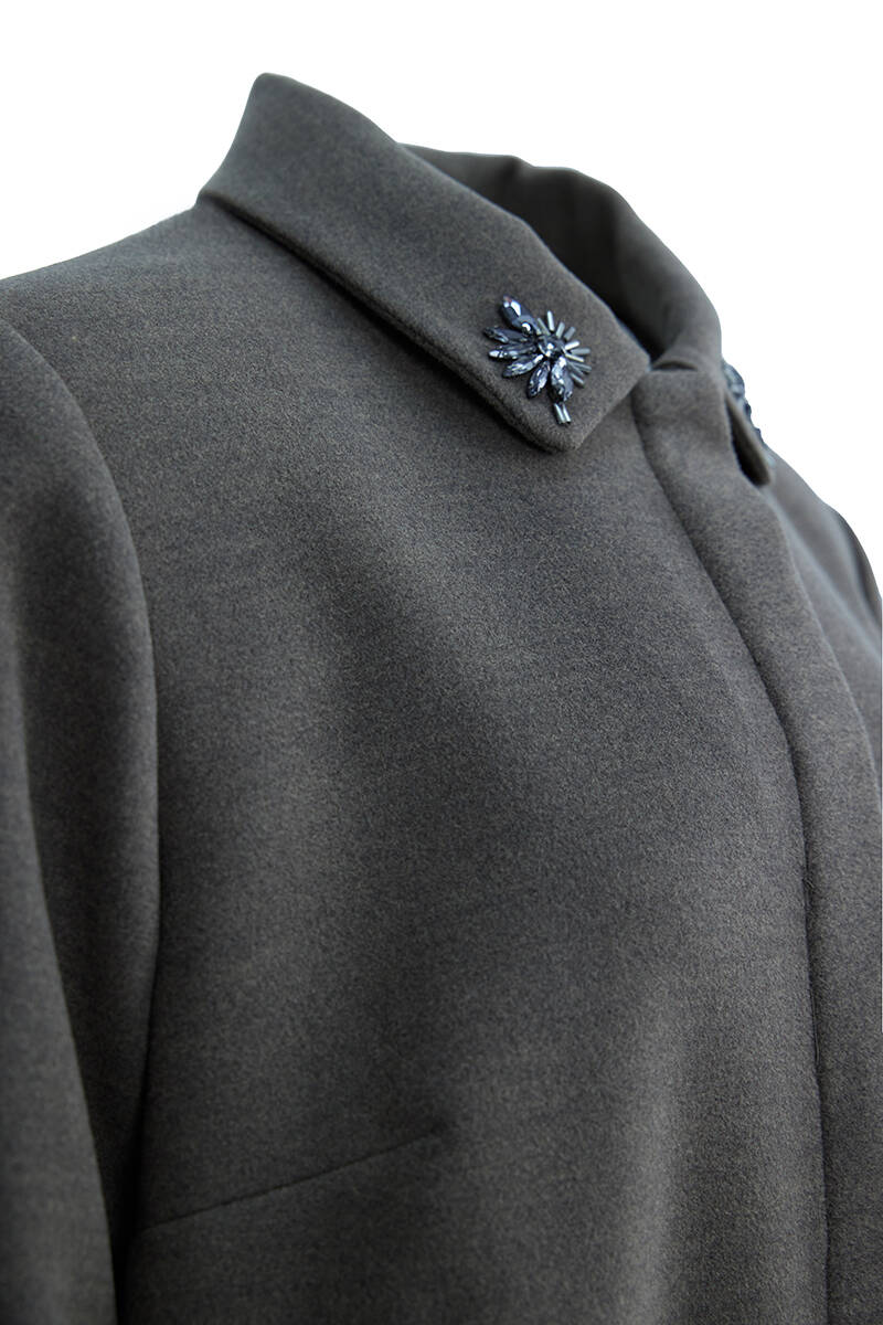 Kahverengi Yakası İşleme Detaylı Manto