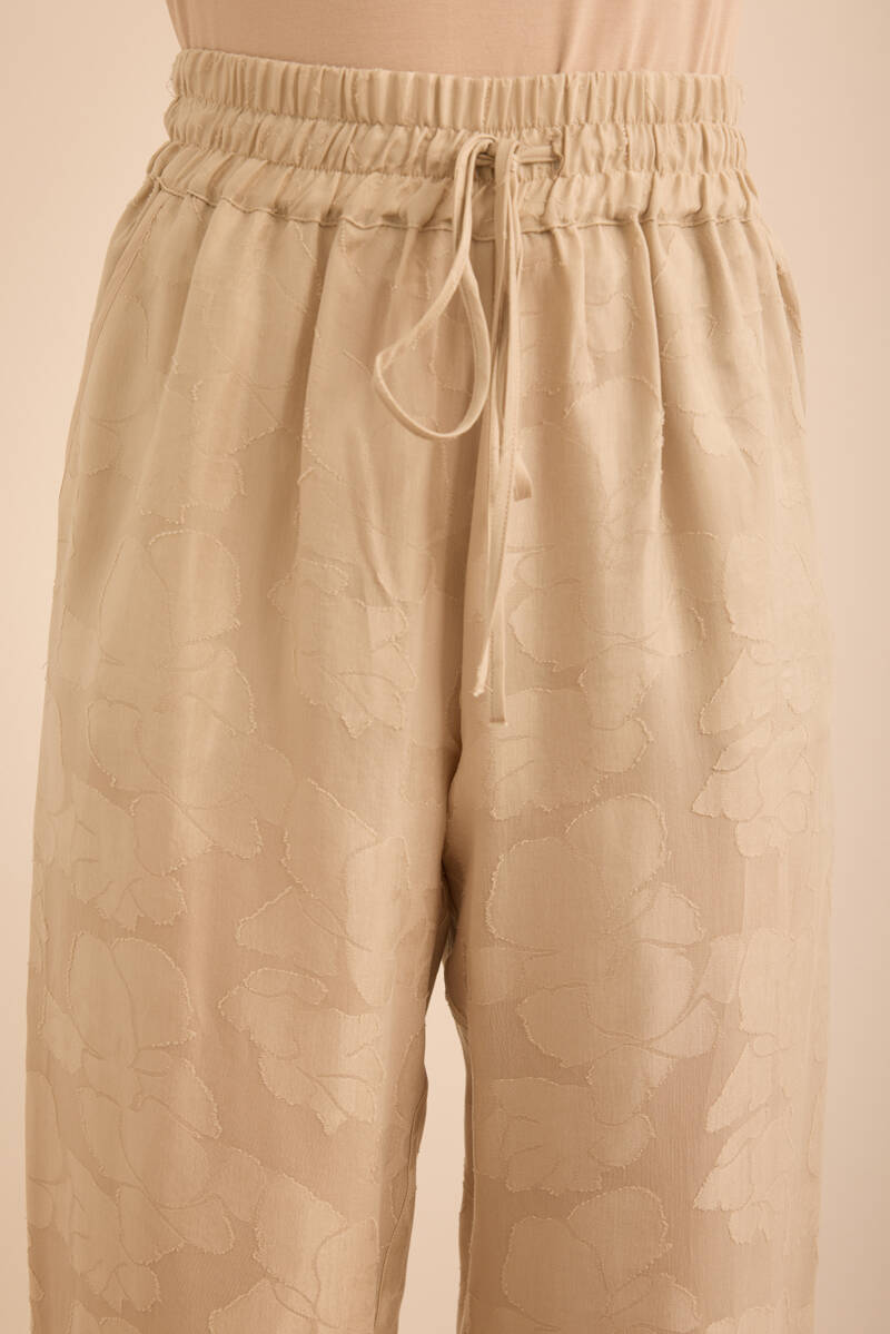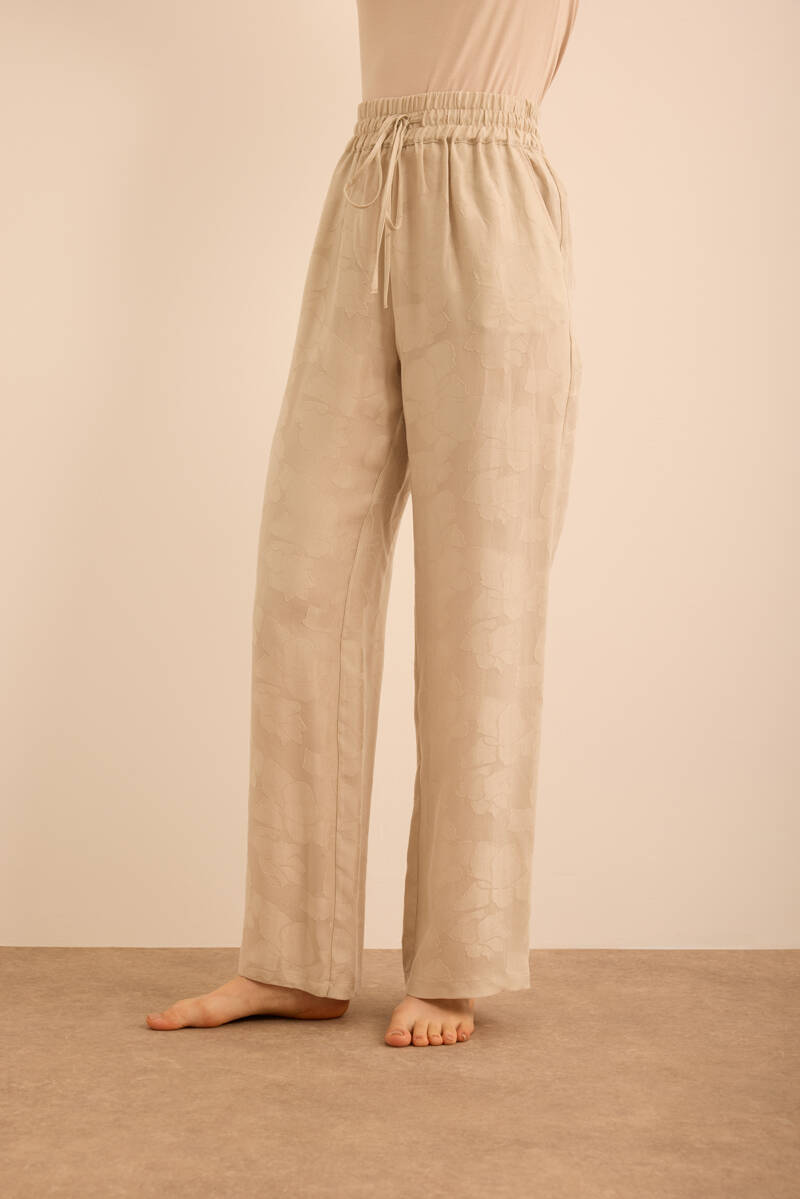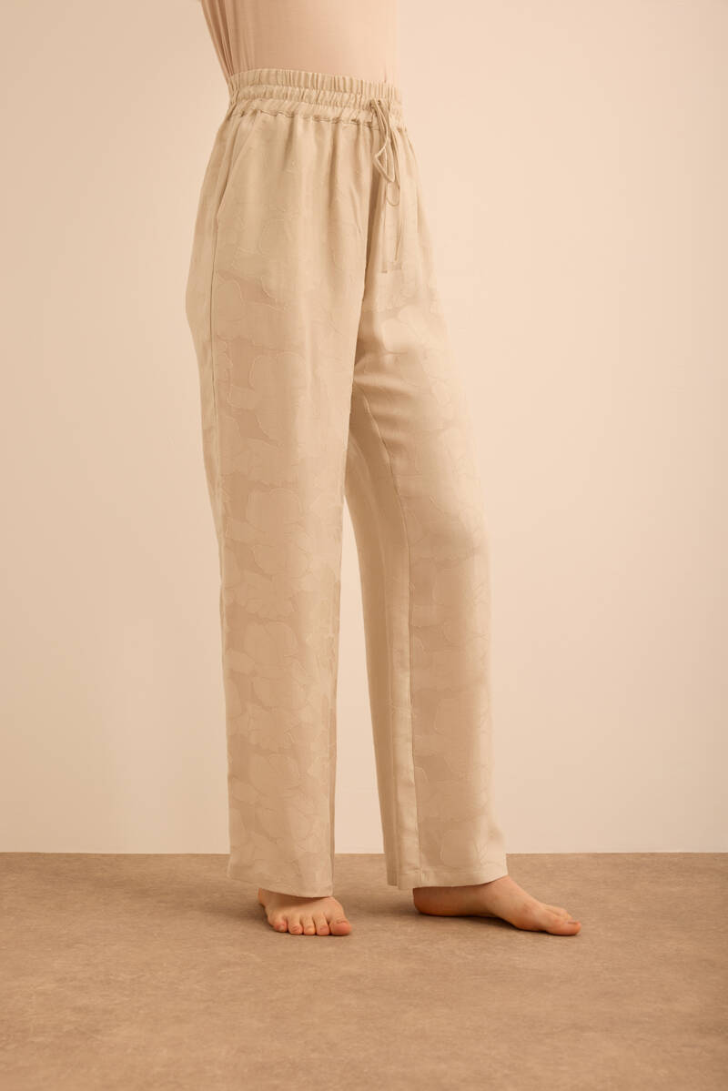 Lacivert Çiçek Dokulu Tencel, Beli Lastikli Pijama Altı