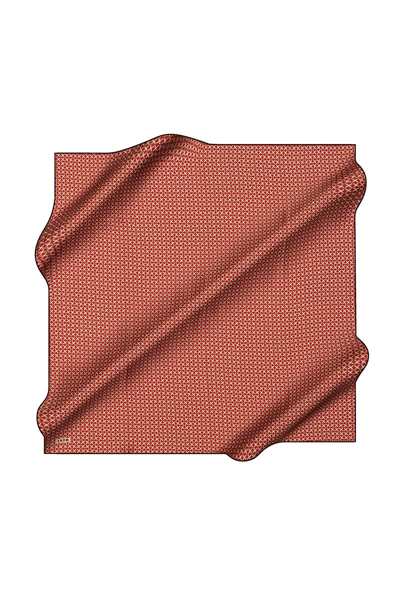 Geometrik Desenli 90X90 İpek Krep Saten Eşarp