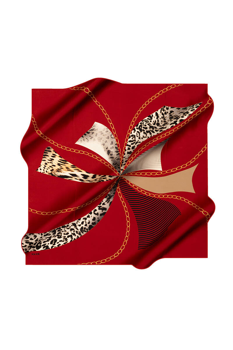 Geometrik Desenli 90X90 İpek Krep Saten Eşarp