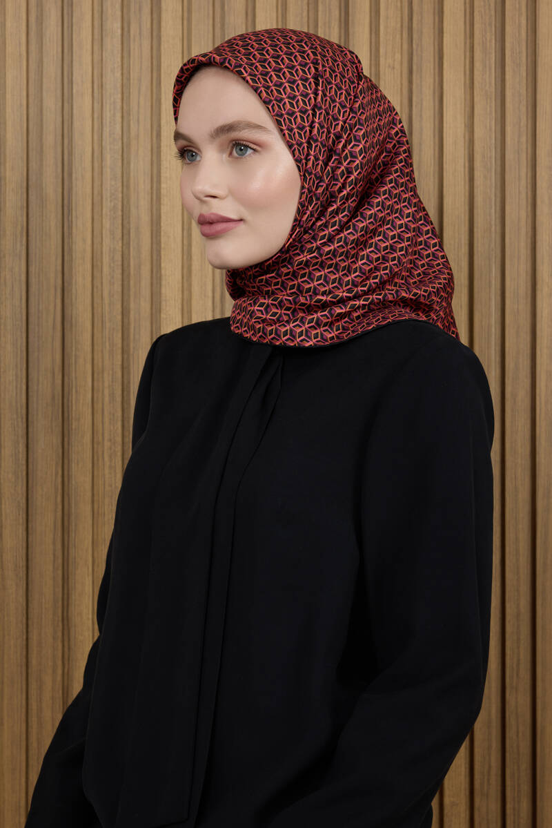 Geometrik Desenli 90X90 İpek Krep Saten Eşarp