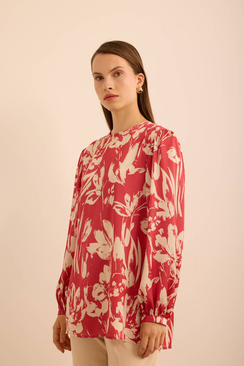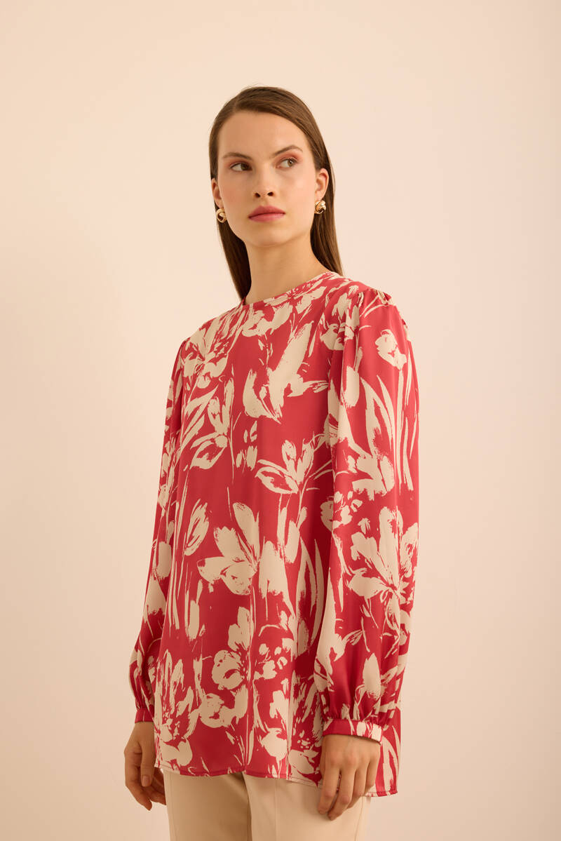 Ekru Kol Ucu Dikiş Detaylı Viscon Tunik