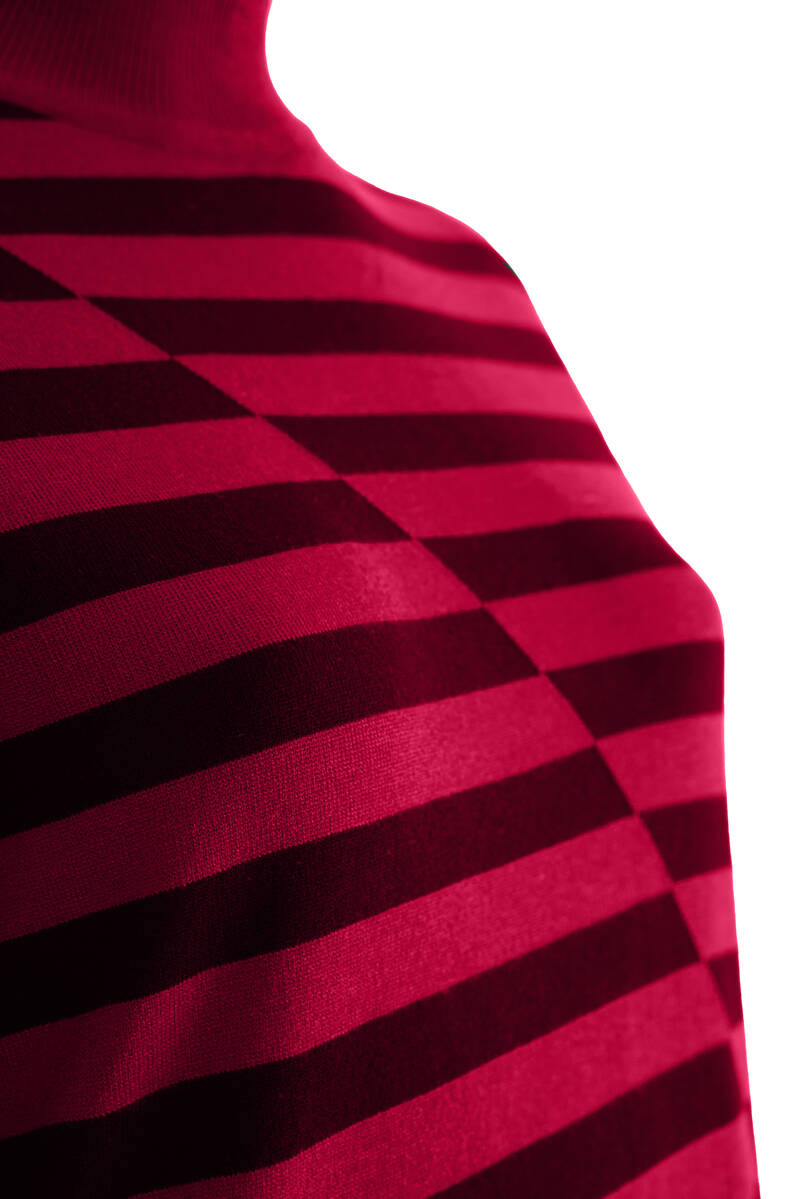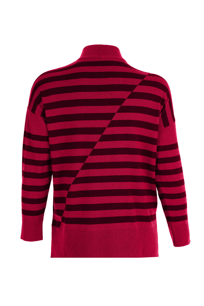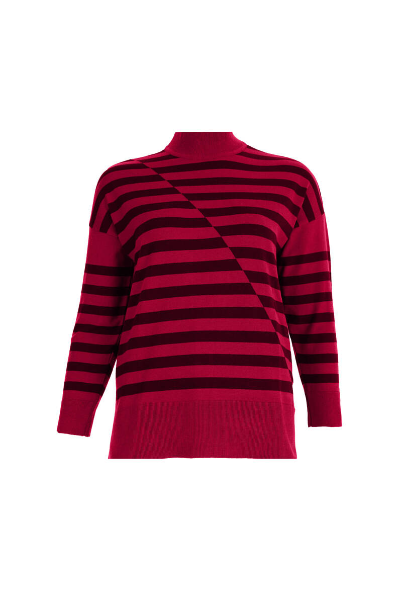 Kırmızı Çizgili Yarım Balıkçı Triko Bluz