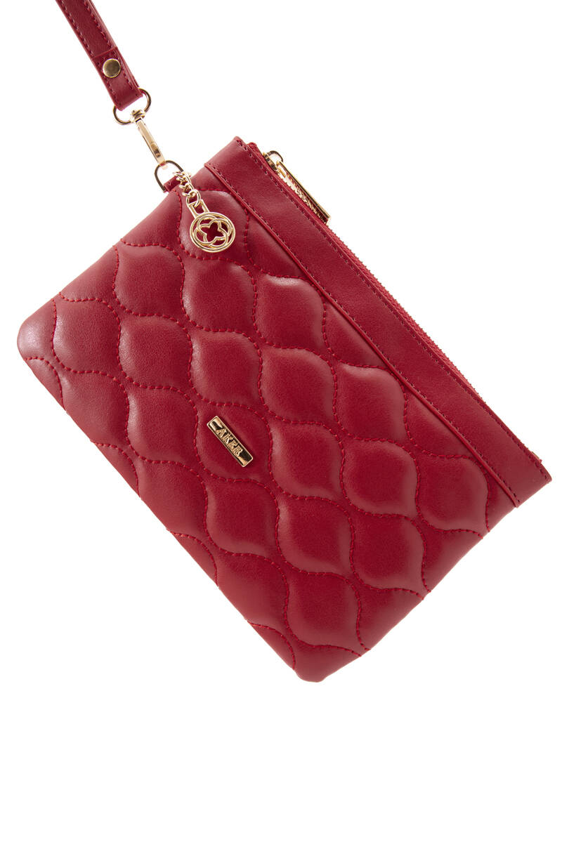 Kırmızı CZDN30007 KAPİTONE FERMUAR DETAYLI CÜZDAN