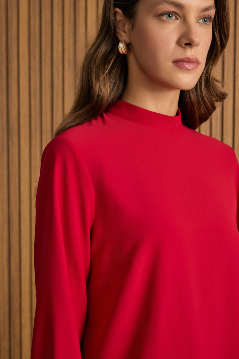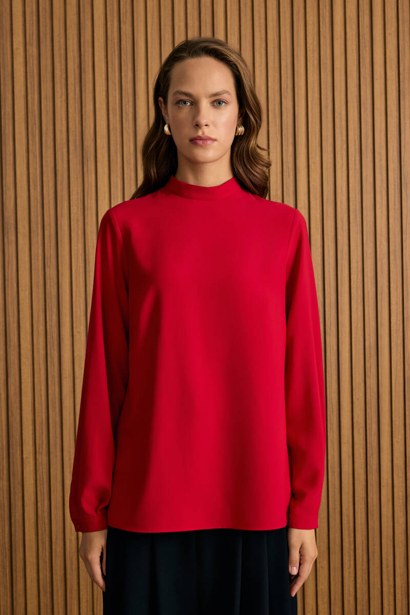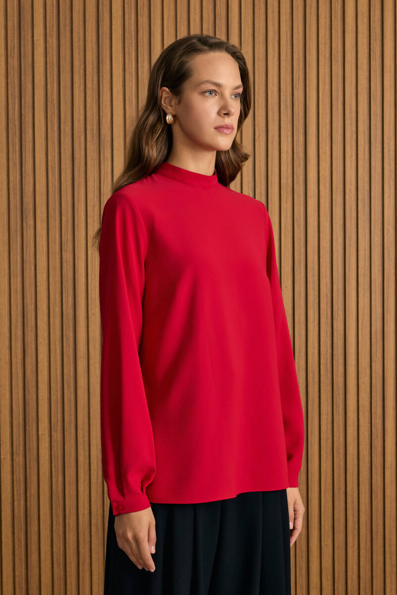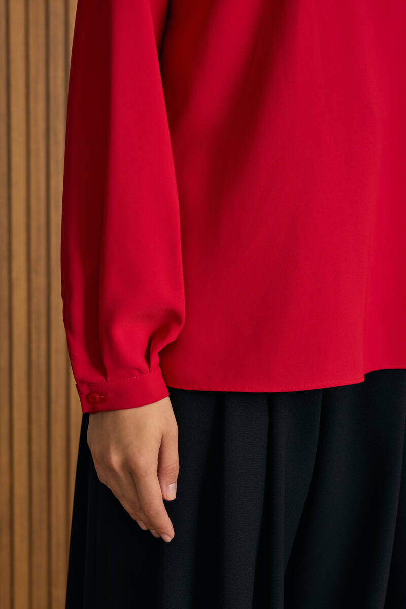 Kırmızı Çiçek Desenli İnce Dokuma Bluz