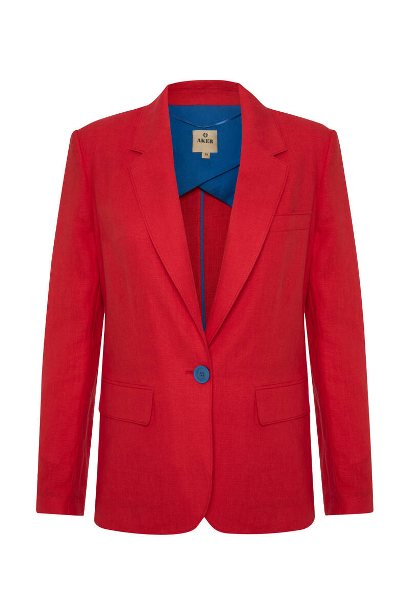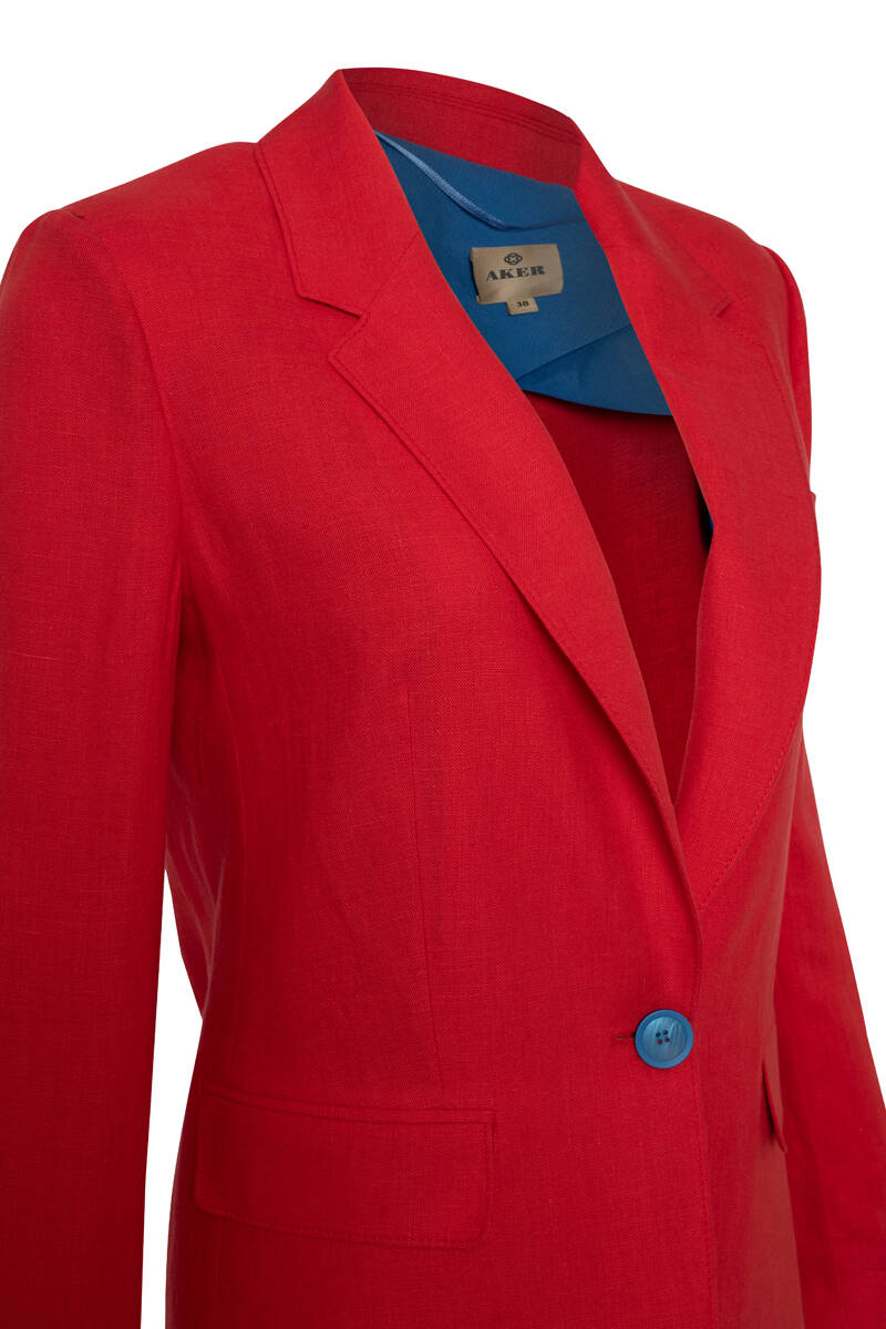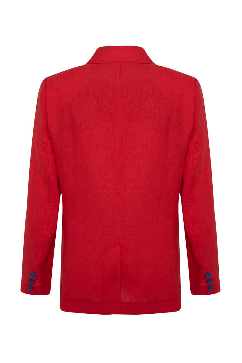 Kırmızı Fleto Cepli Düğmeli Ceket