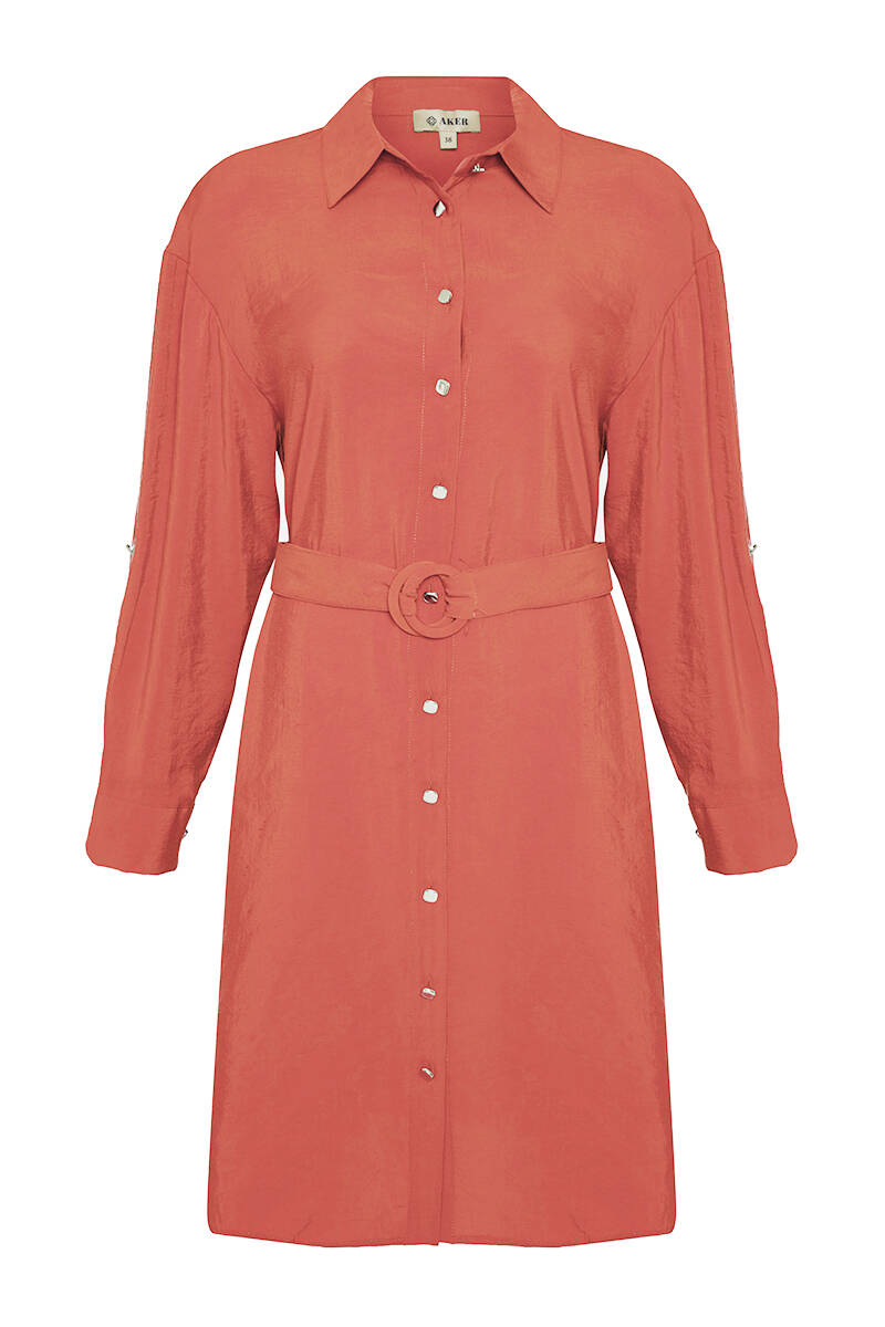 İndigo Dikiş Detaylı Hakim Yaka Tunik