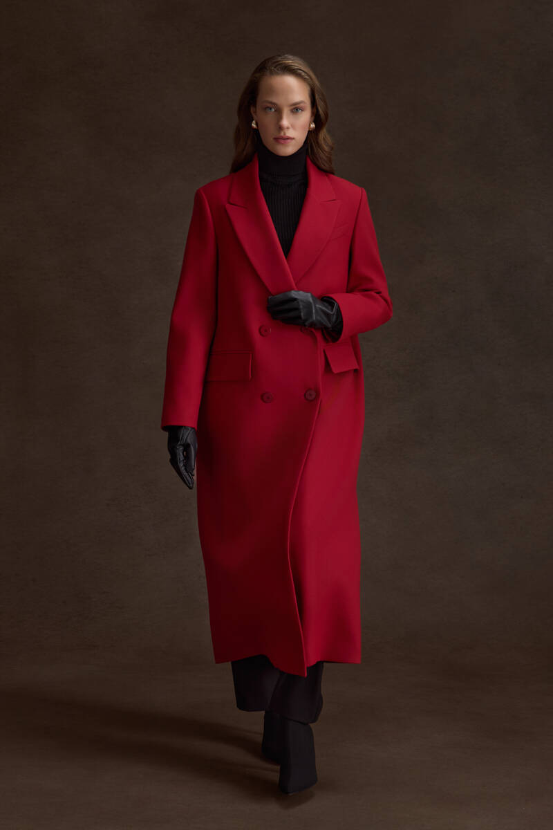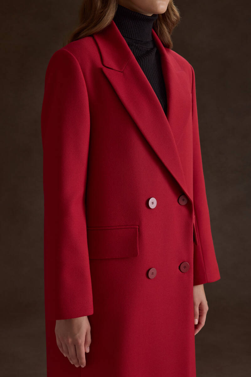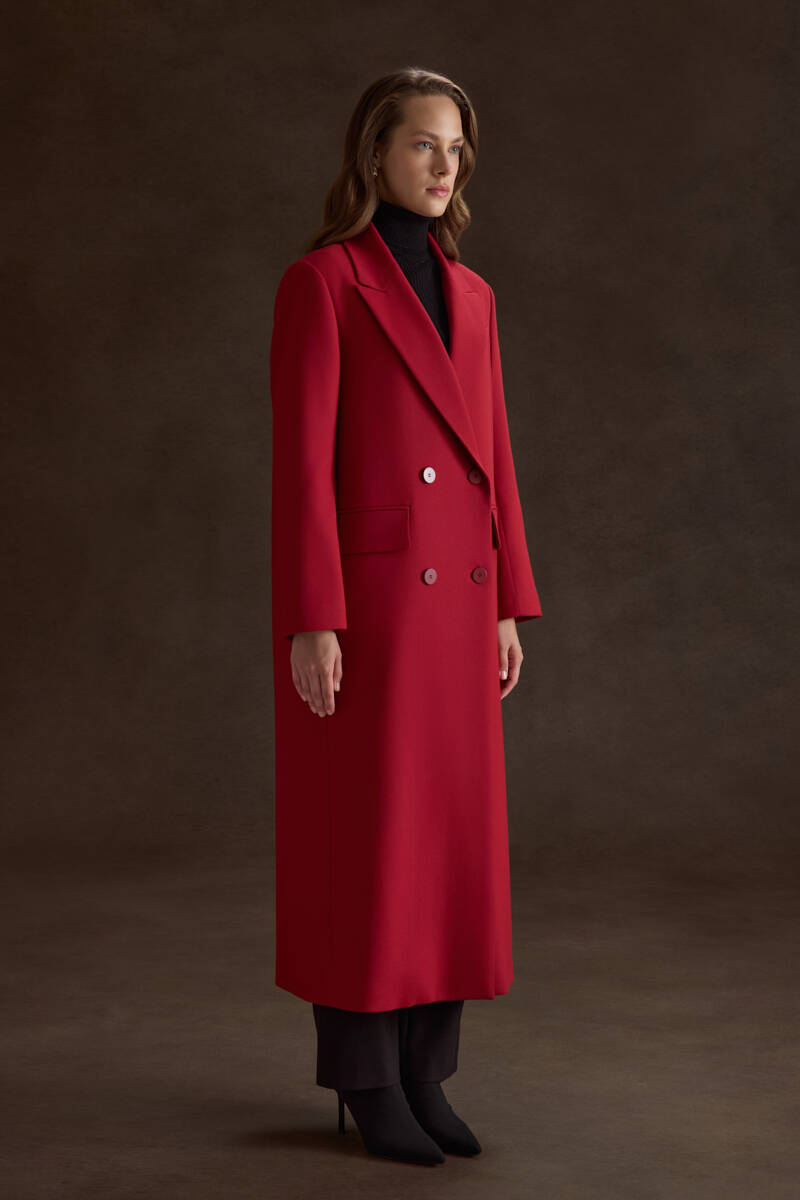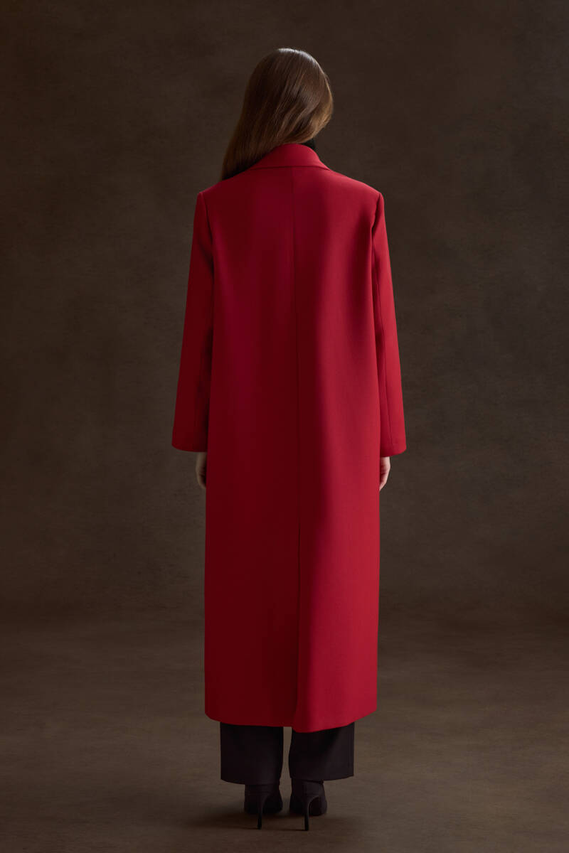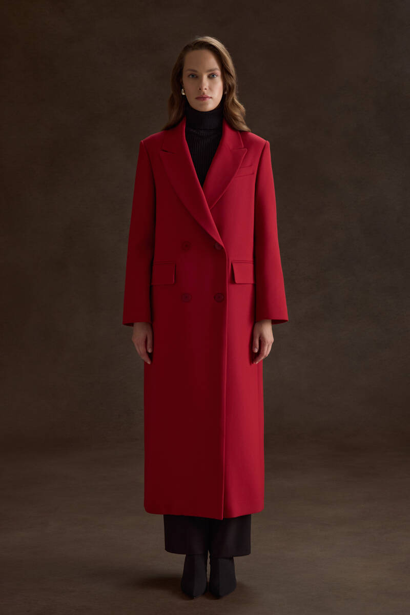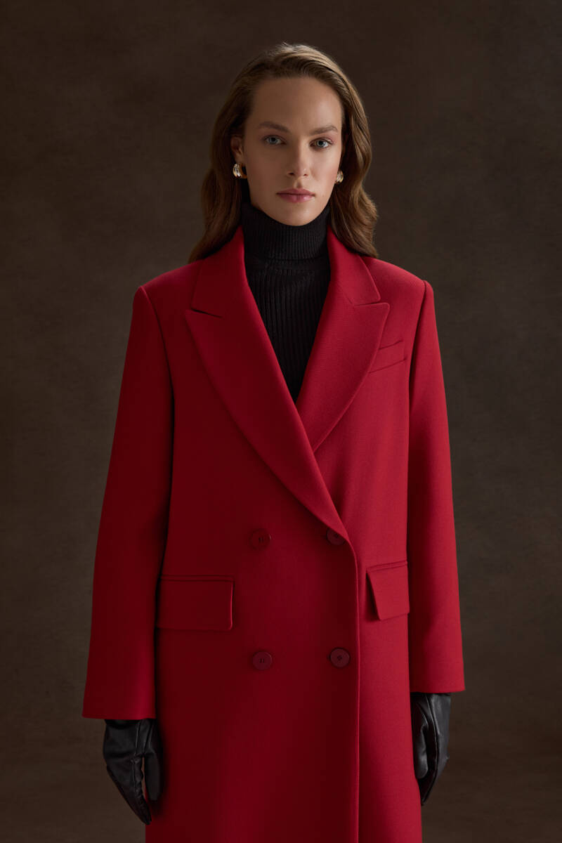 Kırmızı Kruvaze Kapama Pardösü