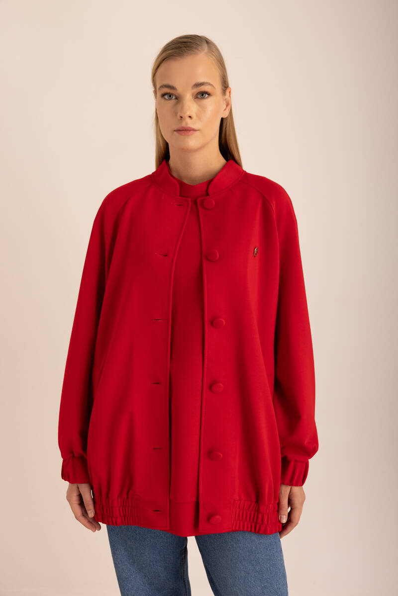 Ekru Sıfır Yaka Metal Düğmeli Şık Ceket
