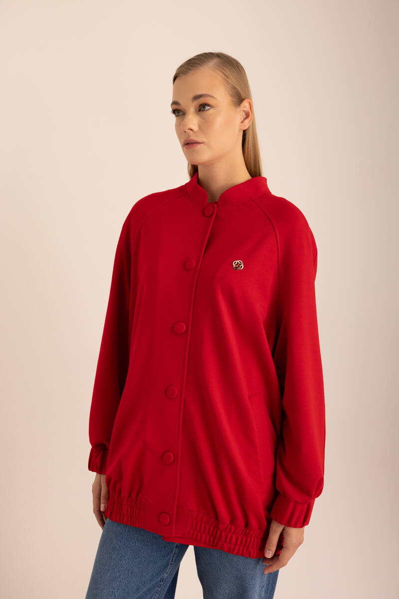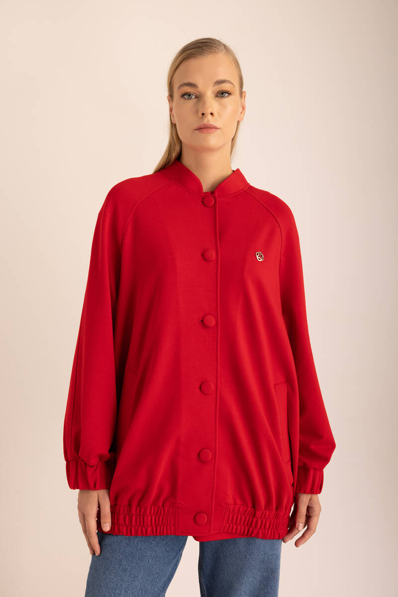 Kırmızı Logo Detaylı Bomber Ceket