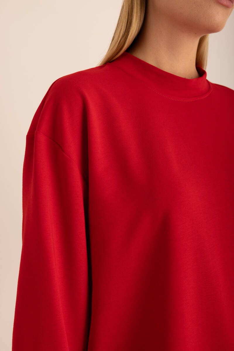 Kırmızı Logo Detaylı Rahat Kalıp Sweatshirt