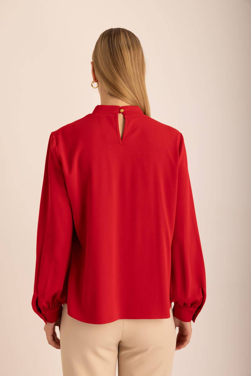 Ekru Kol Ucu Dikiş Detaylı Viscon Tunik