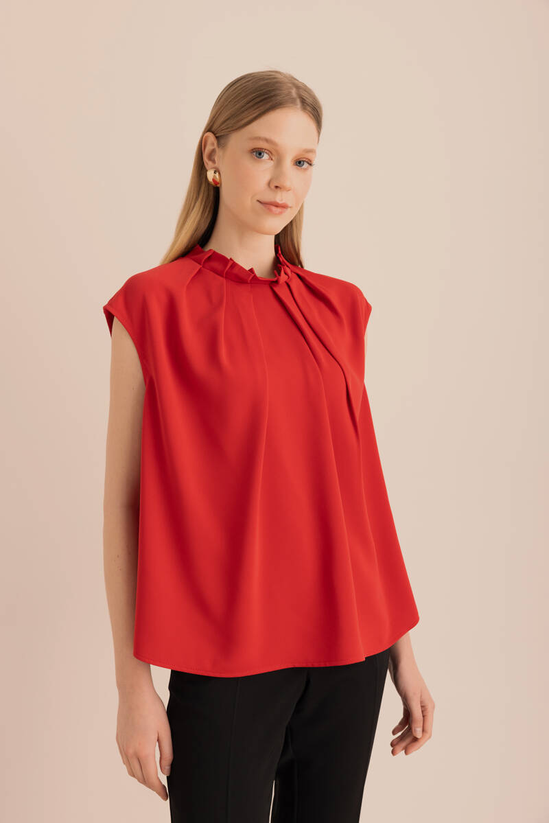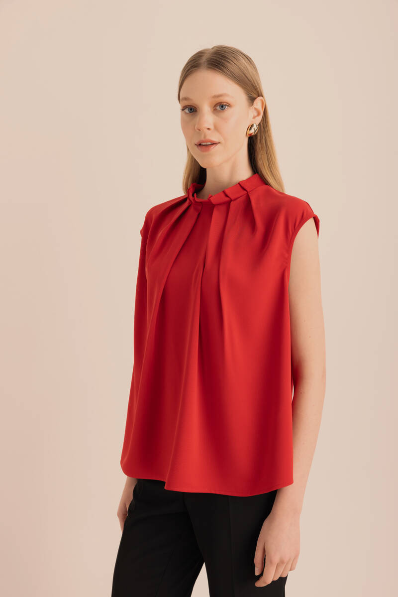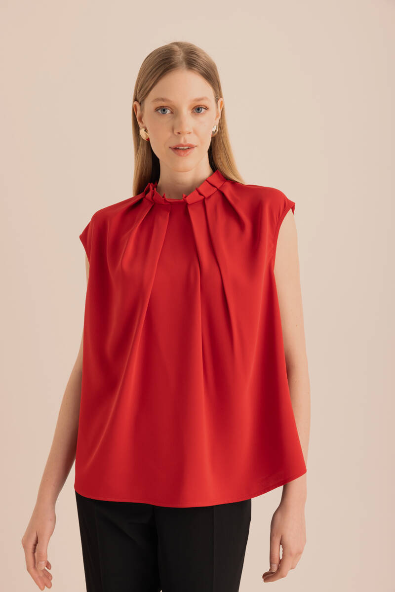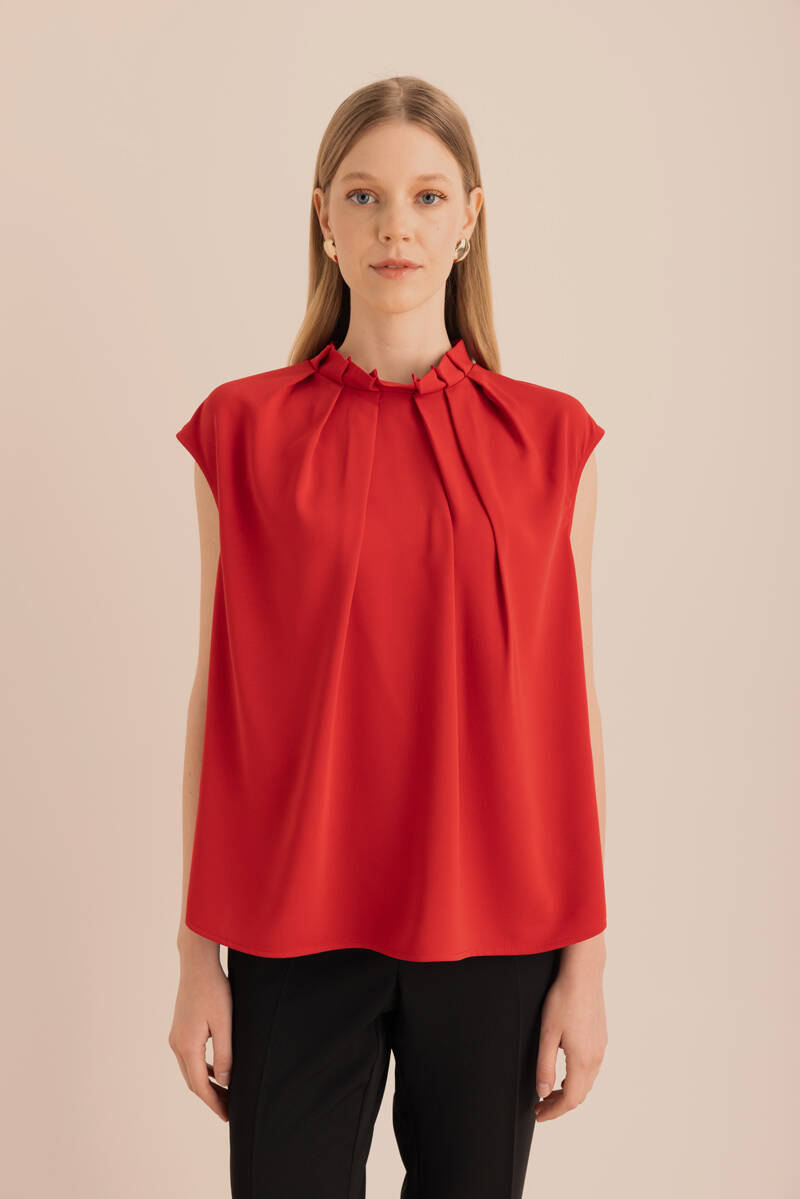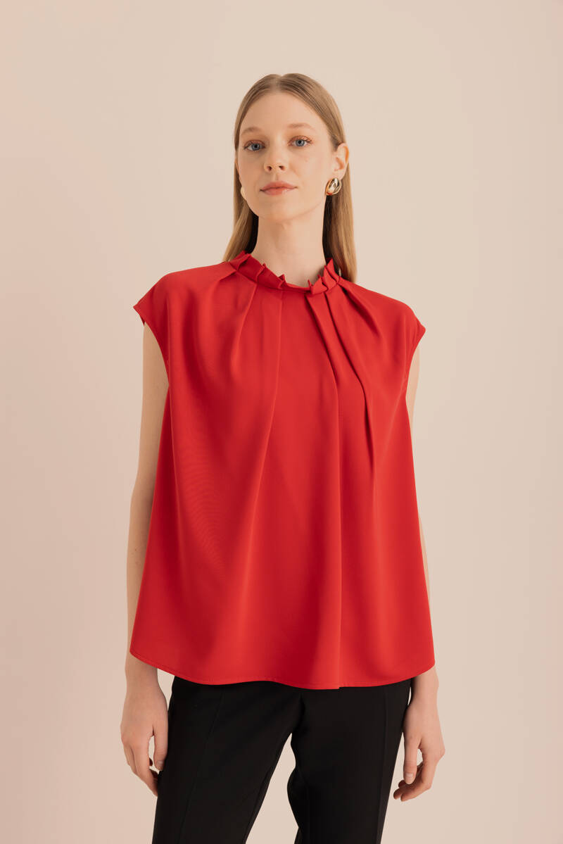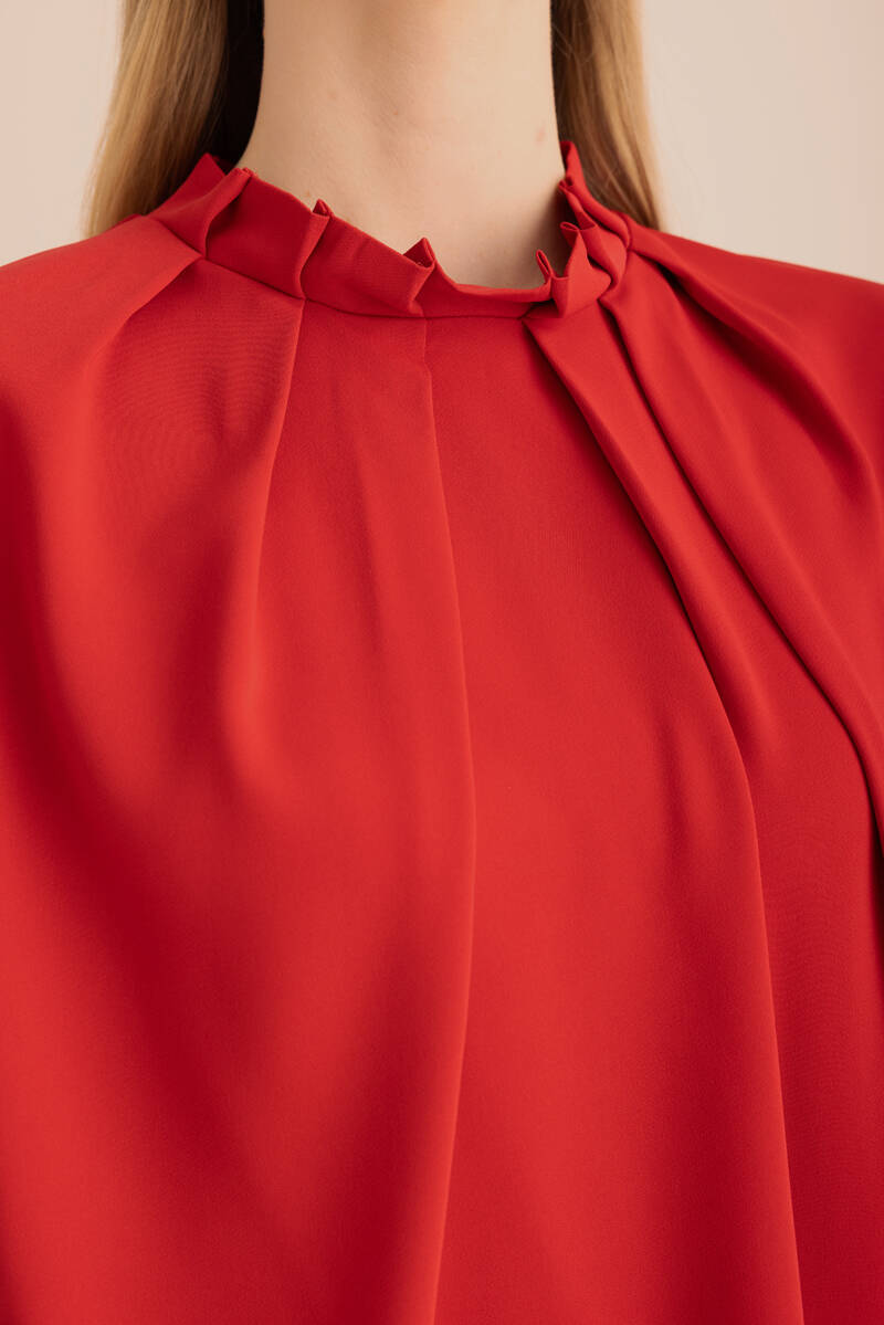 Ön Göğüs Kısmı Pile ve Parça Detaylı Bluz
