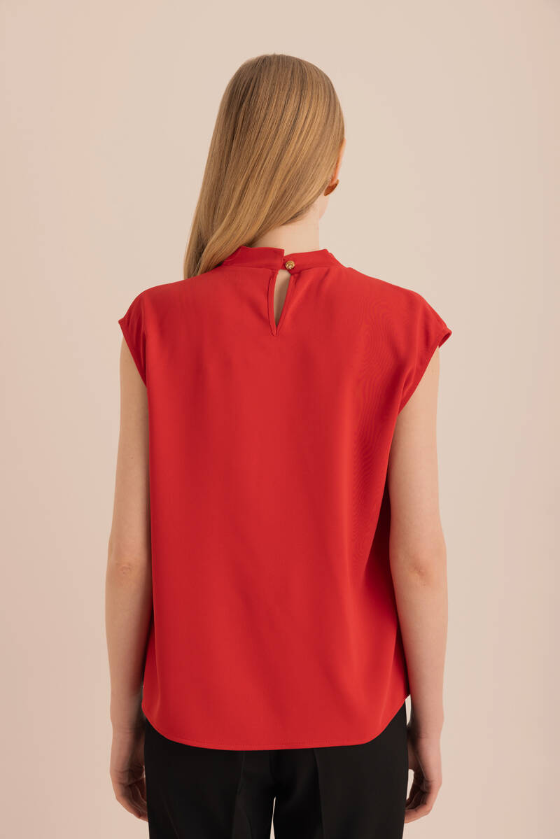 Mercan Bisiklet Yaka Kolsuz Keten Bluz