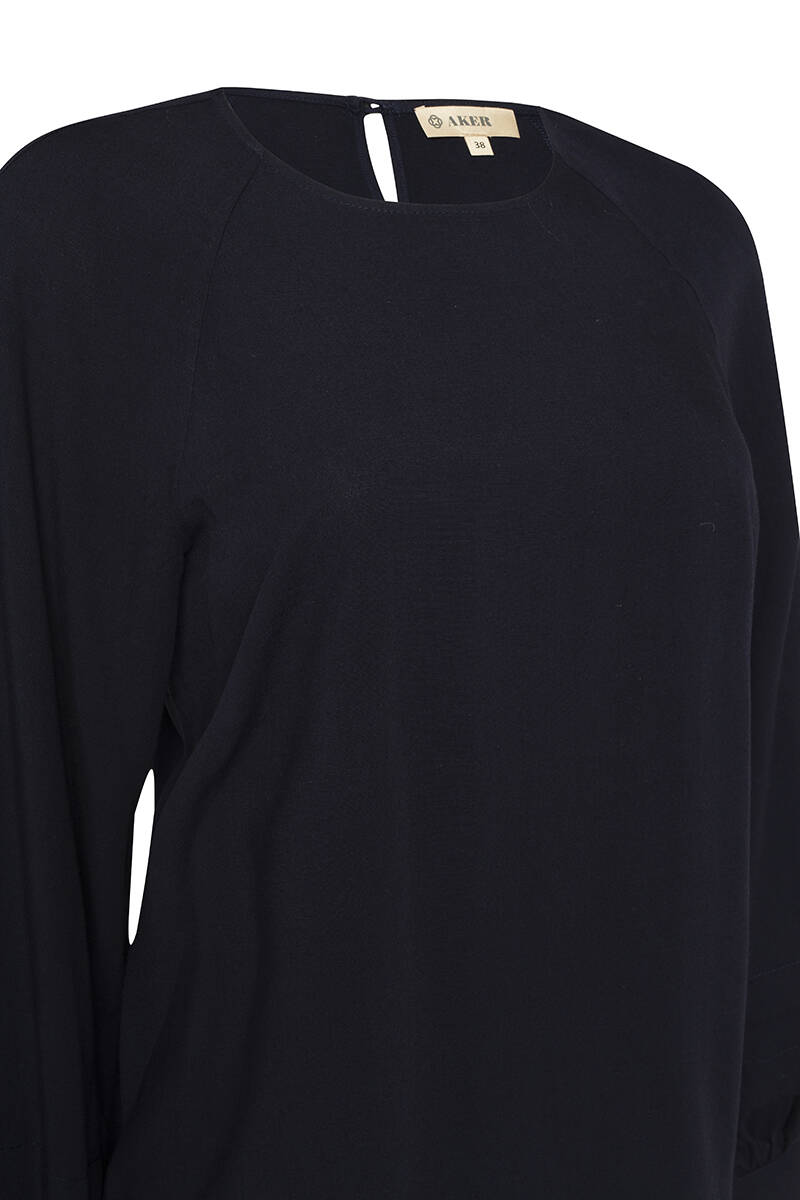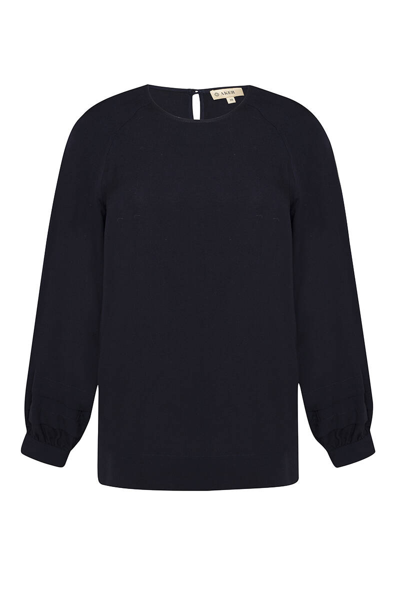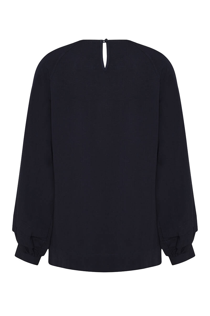 Lacivert Kolları Pile Detaylı Keten Bluz