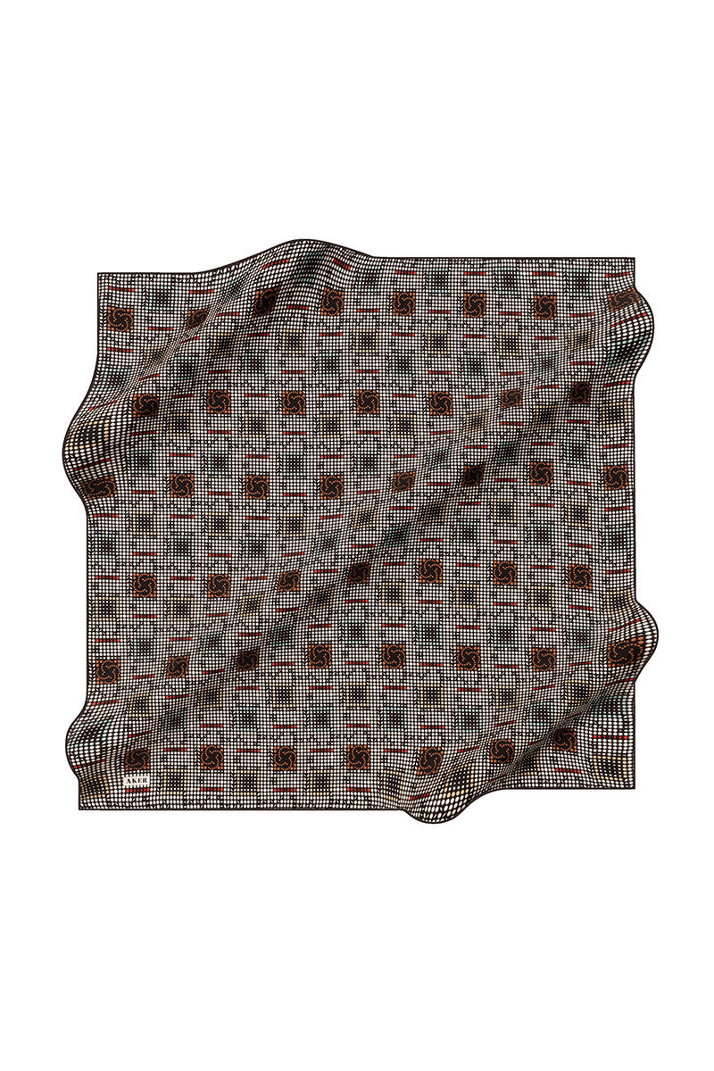 Geometrik Desenli 90X90 İpek Krep Saten Eşarp