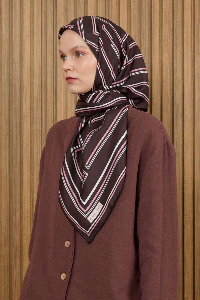 Koyu Kahverengi 90X90 İpek Krep Saten Eşarp