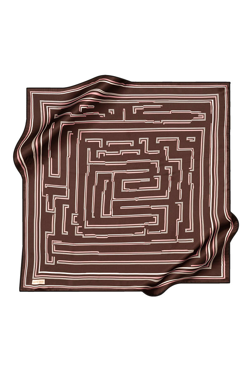 Geometrik Desenli 90X90 İpek Twill Eşarp
