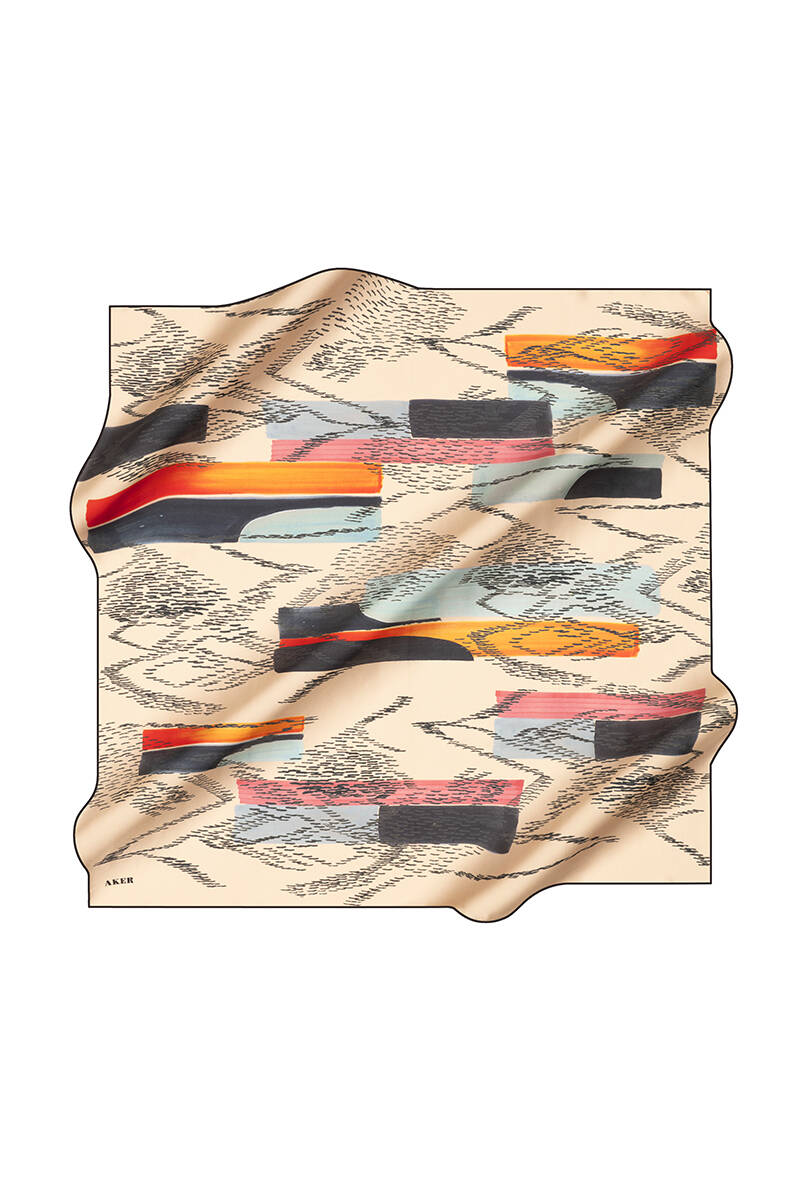 Geometrik Desenli 90X90 İpek Krep Saten Eşarp