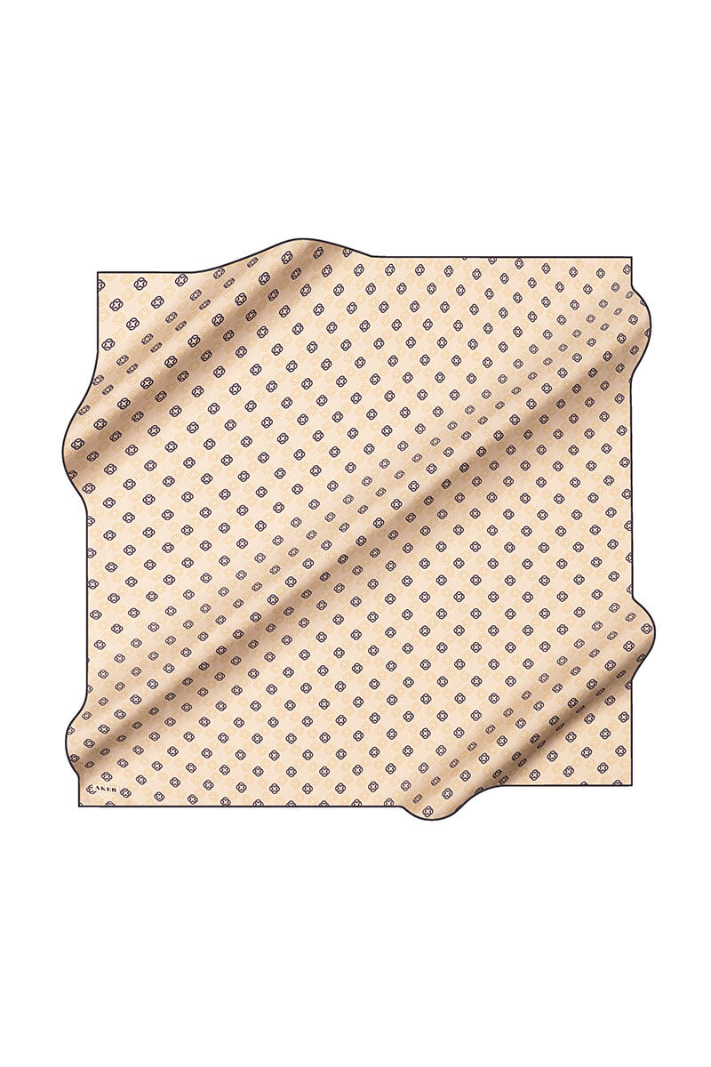 Logo Desenli 90X90 İpek Krep Saten Eşarp