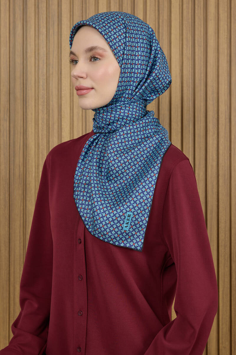 Geometrik Desenli 90X90 İpek Krep Saten Eşarp