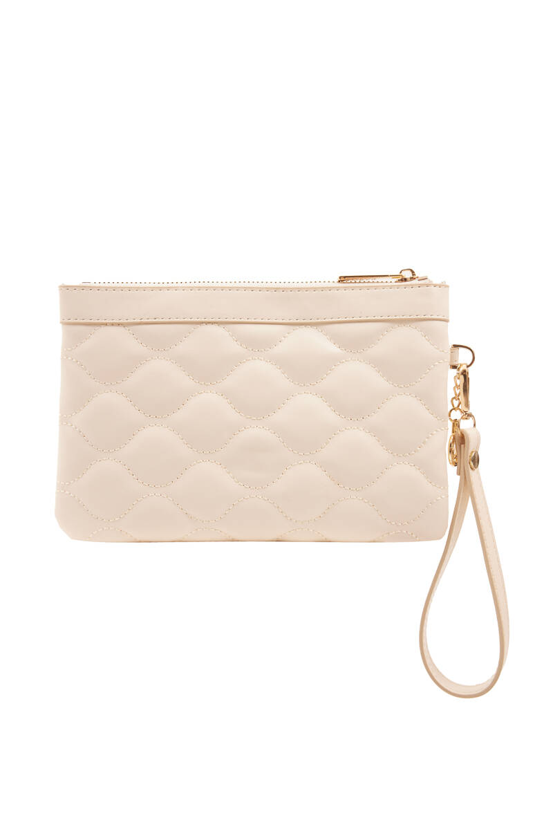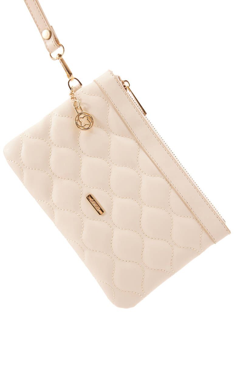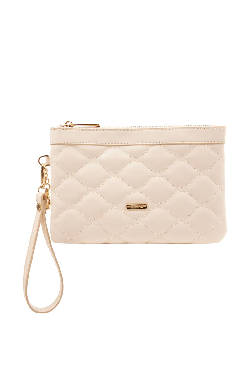 Krem CZDN30007 KAPİTONE FERMUAR DETAYLI CÜZDAN