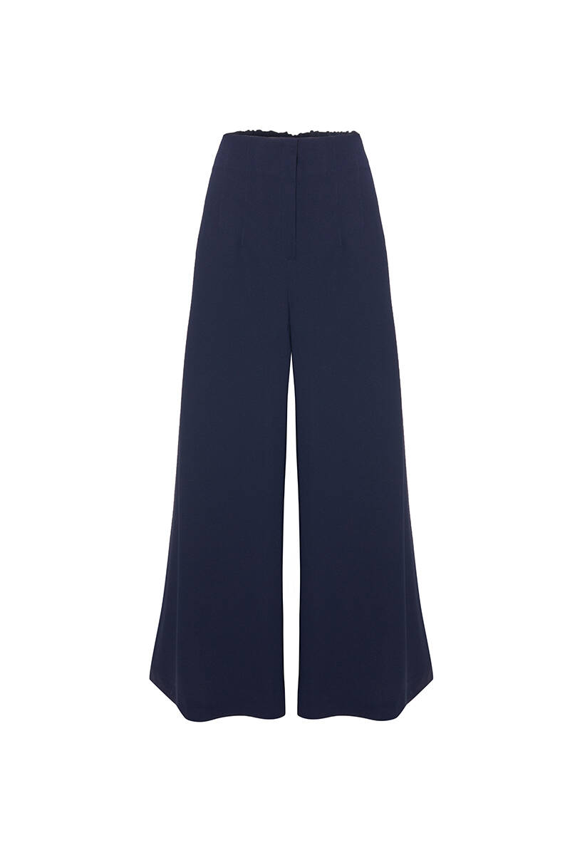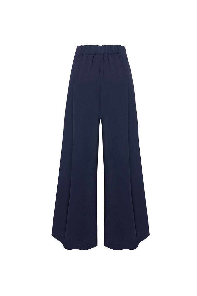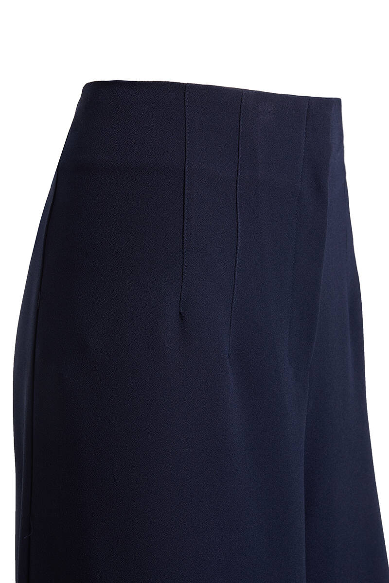 Lacivert Beli Lastik Detaylı Tencel Pantolon Etek