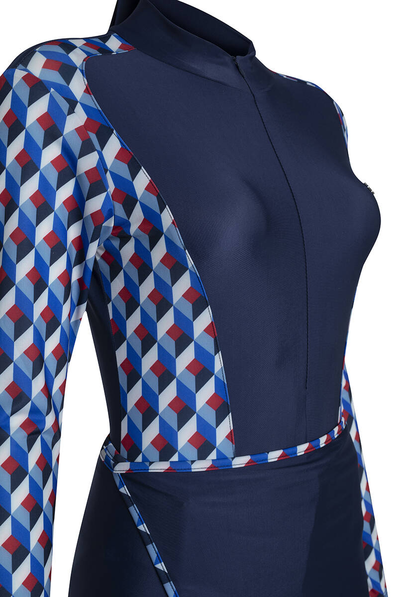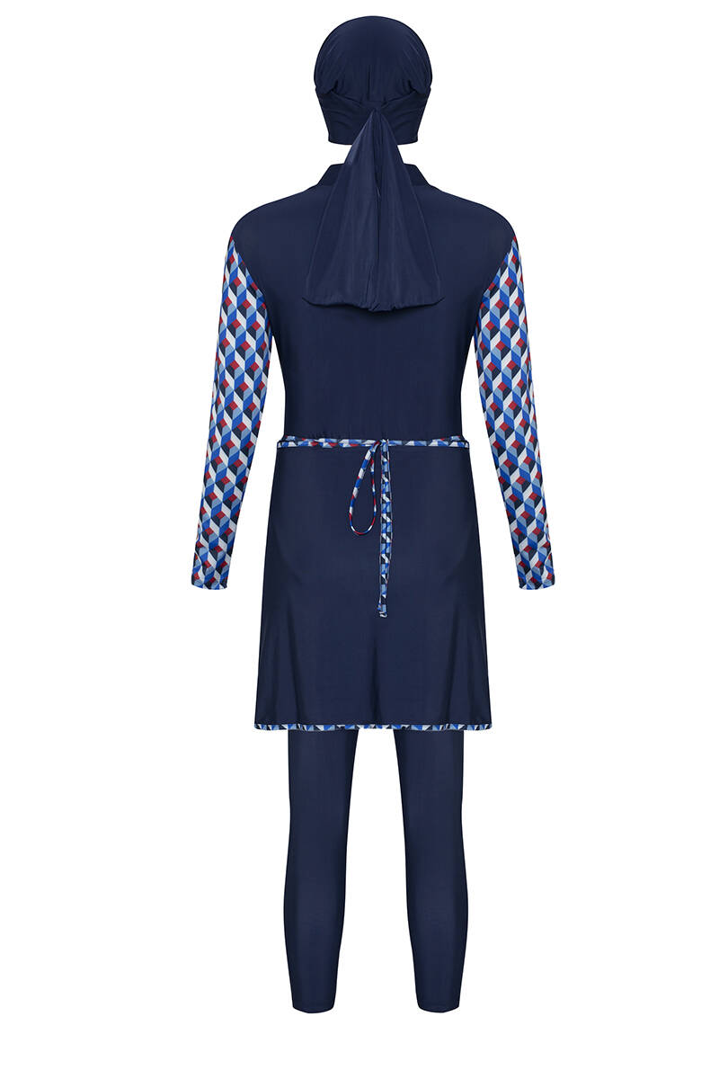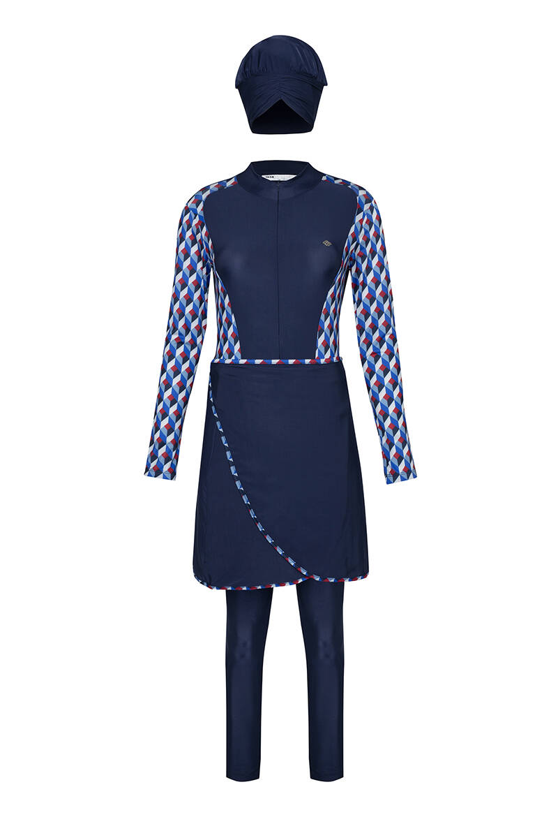 Lacivert Pareo Eteği Çıkarılabilir Tesettür Mayo