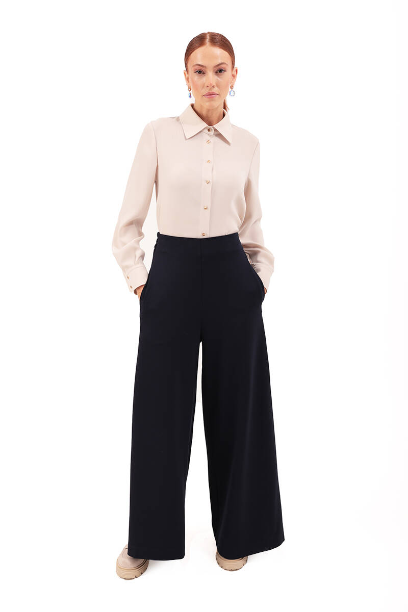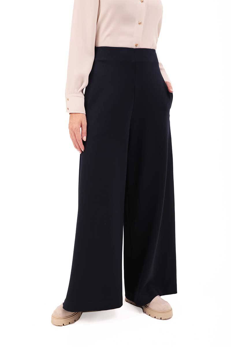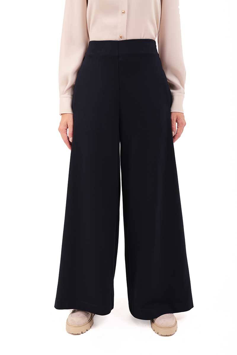 Lacivert Örme Arka Bel Lastikli Pantolon Etek