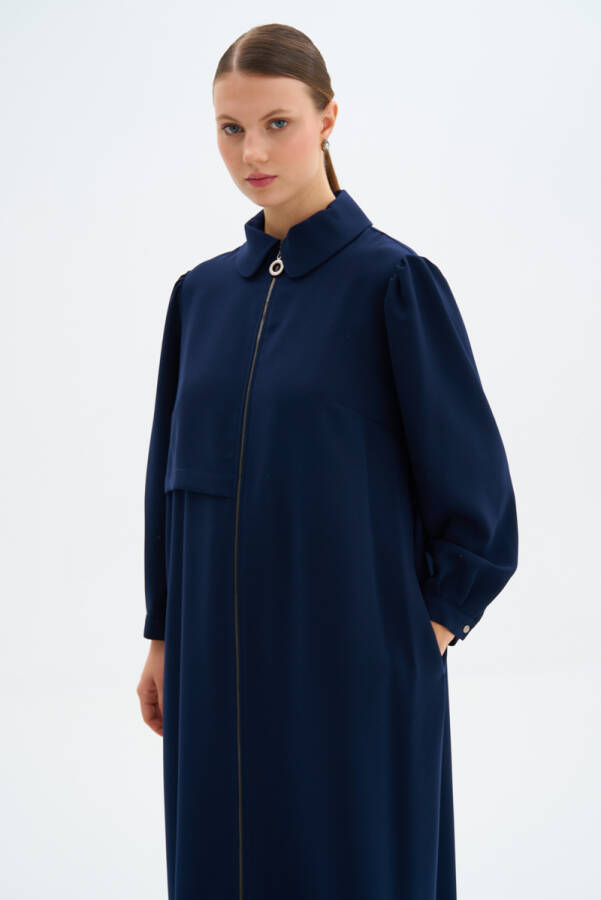 Yeşil Anler Detaylı Fermuarlı Ferace