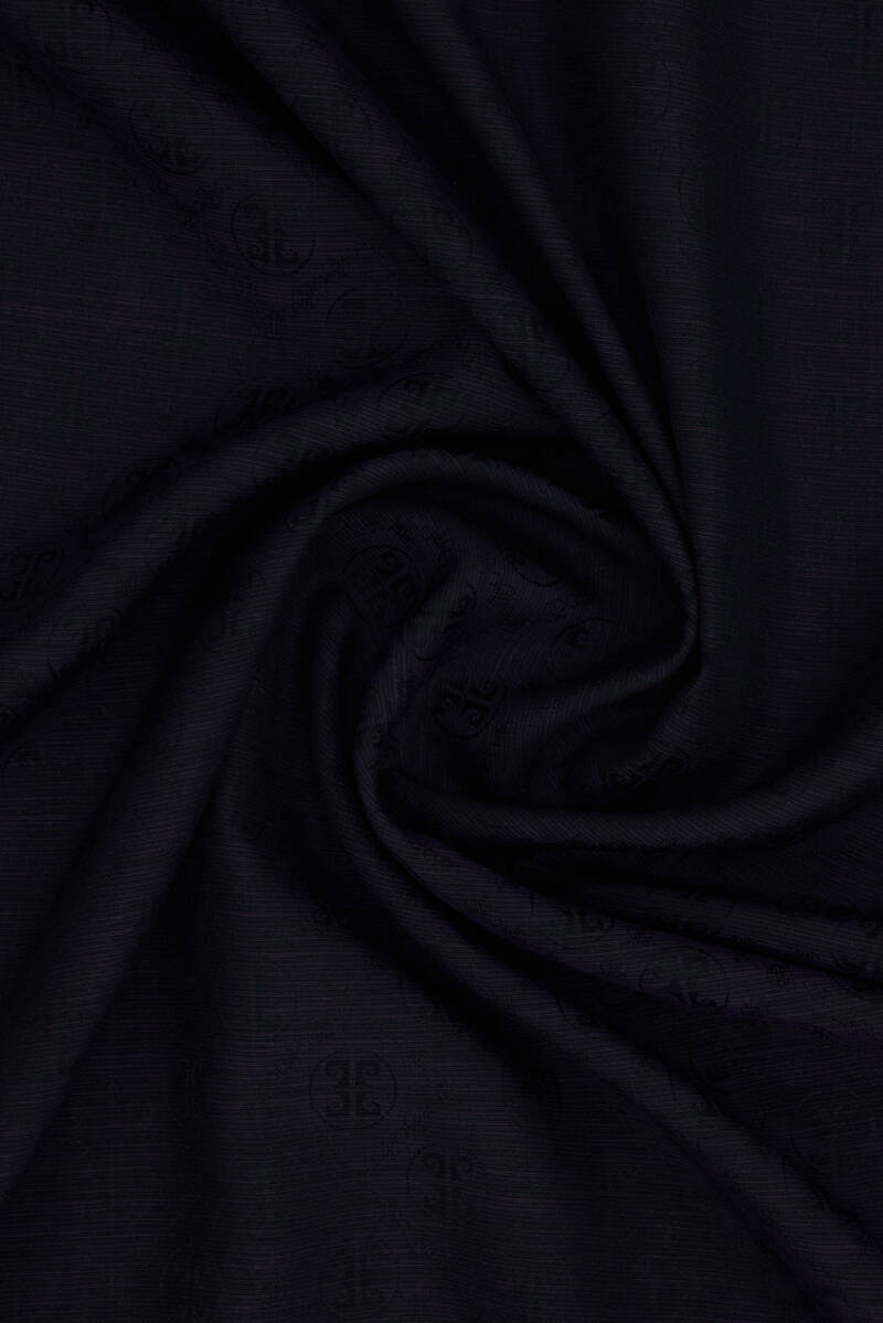 Lacivert 75X190 CM Logolu İpek Koton Jakar Şal