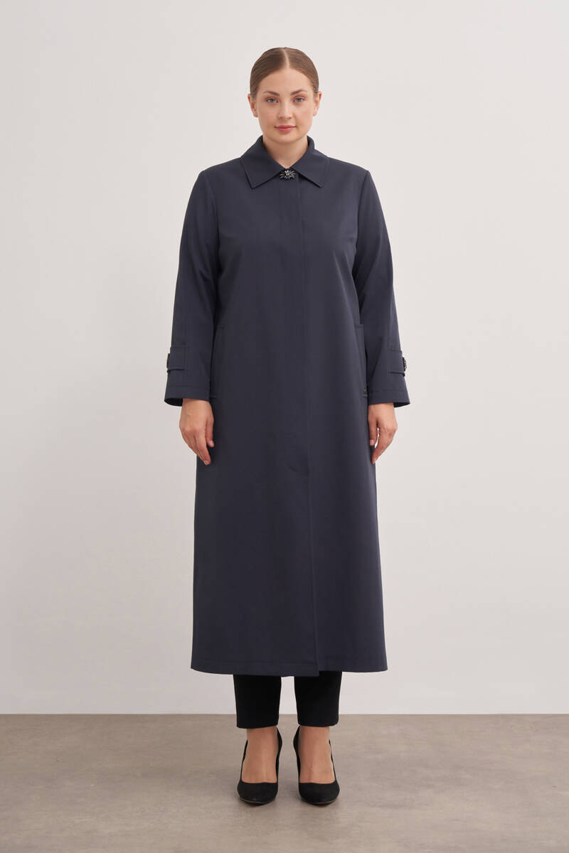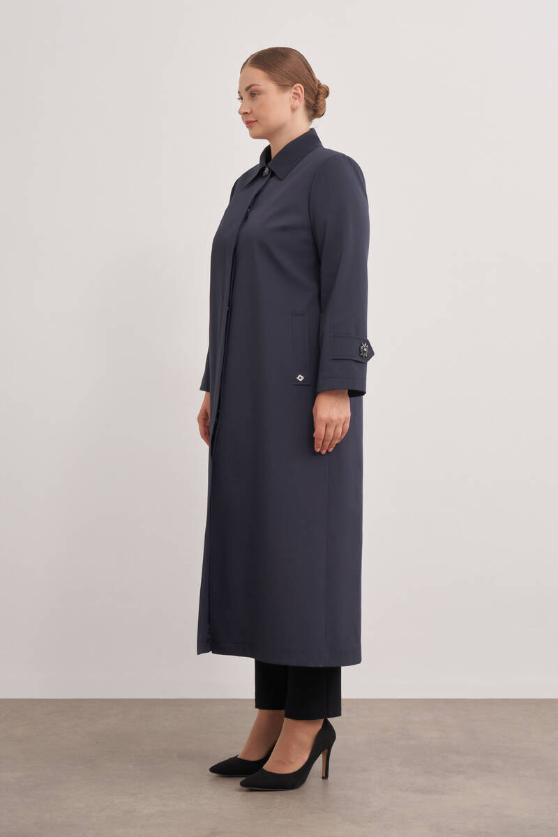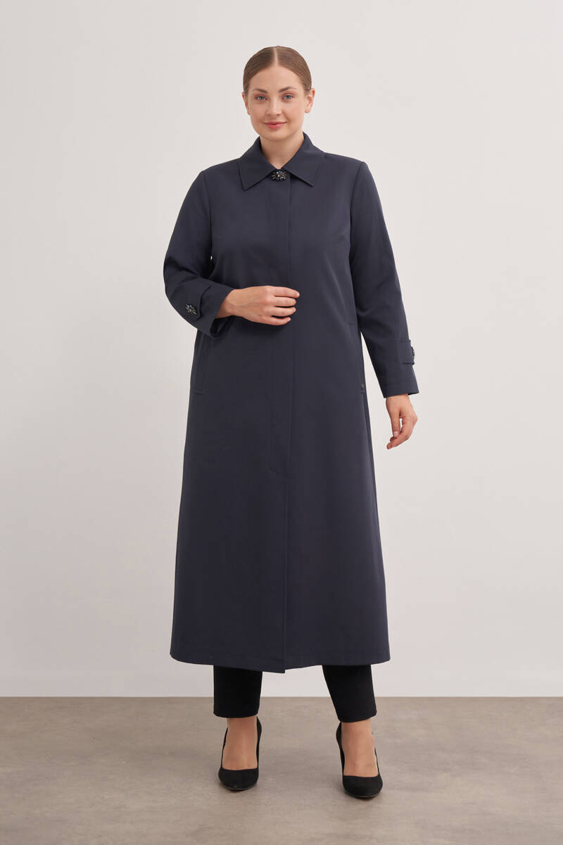 Siyah Çizgi Dokulu Tencel Rayon Kumaş Trençkot